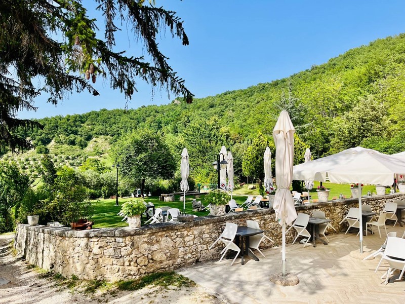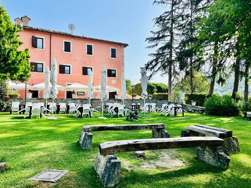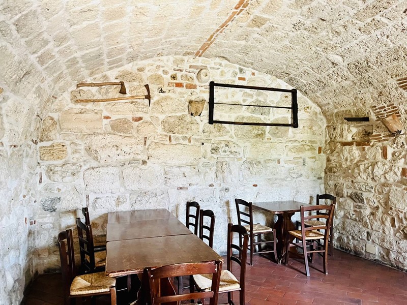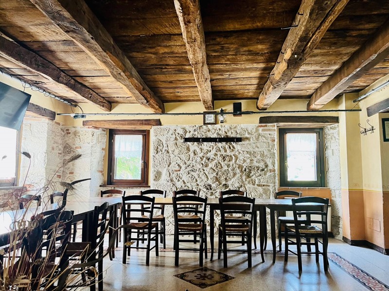 La struttura ha un TERRENO AGRICOLO di 4 ettari, una grande corte esterna a GIARDINO, tavolini all'aperto e al chiuso. Il ristorante ha le sale sia a piano terra che a piano primo. Le camere si trovano al secondo piano e sono n.5 (2 matrimoniali e tre quadruple). Il casolare è stato ristrutturato ed è in attività da 23 anni. Ottimi ricavi. Parcheggio esterno di proprietà.