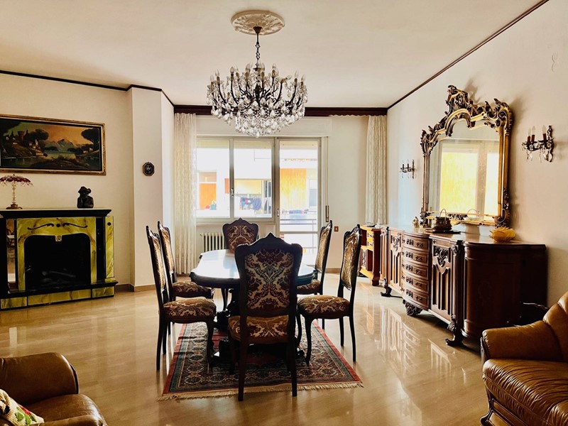 L'appartamento è composto da: ampio ingresso, ampio soggiorno con TERRAZZO, n.3 ripostigli, n.3 camere grandi, zona pranzo con comodo e lungo balcone, cucina abitabile e n.2 bagni. La superficie è di 215mq, con n.1 balcone e n.1 terrazzo di 25mq . Completano la soluzione le due cantine ai piani bassi. Il riscaldamento è autonomo.