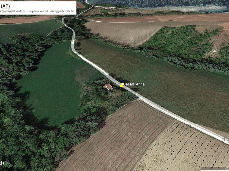 Il casale, adagiato in una bellissima valletta ed incorniciato da una ricchissima vegetazione con piante ad alto fusto, alberi da frutta e ulivi, gode di una meravigliosa vista sulla campagna e sulle colline circostanti. Distanza da Castignano km 5 circa, distanza dal mare km 19 circa. Residenza ideale per chi desidera vivere nella tranquillità e a contatto con la natura.
