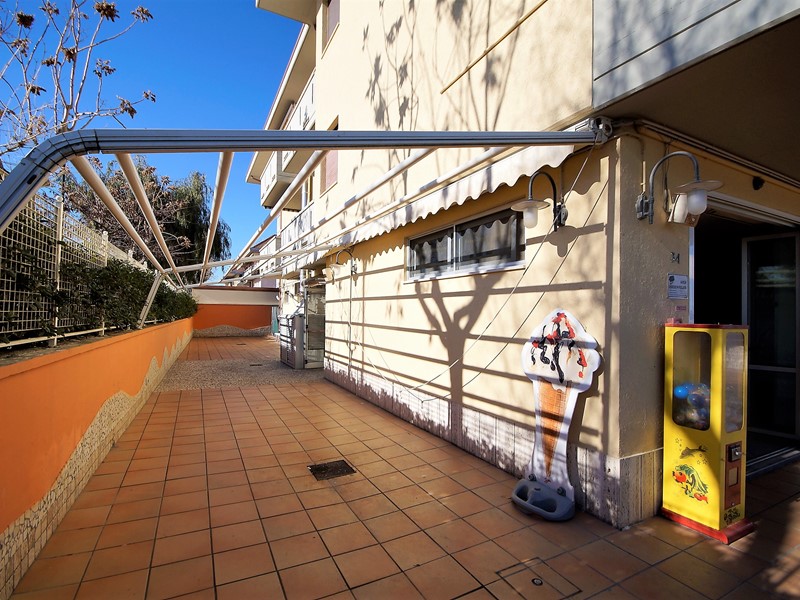 All'esterno il locale dispone di un'area di mq 140 circa fornita di panchine, tavoli e sedie. Si trova in prima fila mare nell'area pedonale del lungomare vicina a servizi sportivi che richiamano un gran numero di utenti.