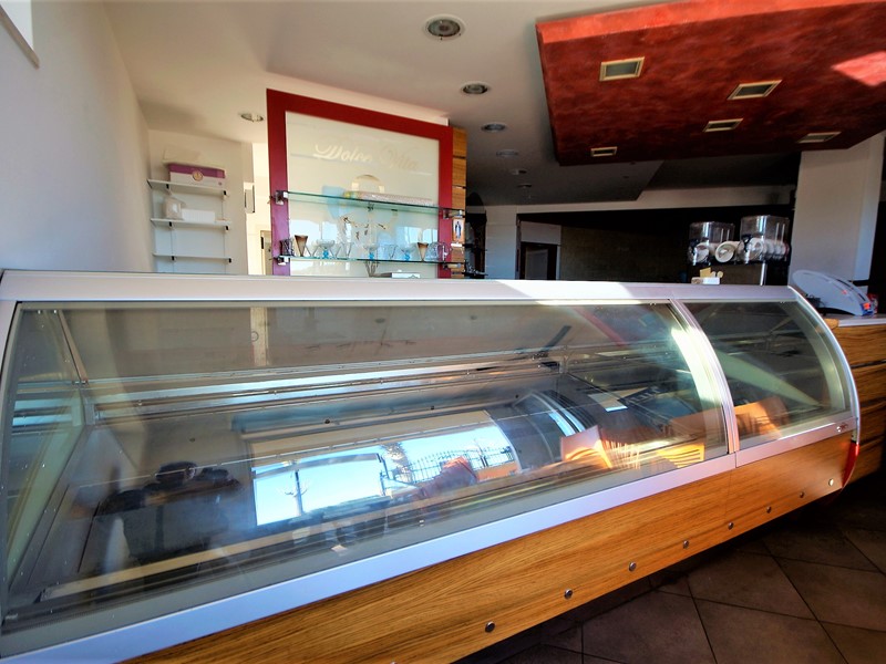 Il locale, che misura mq 110 circa, dispone di un'ampia zona interna arredata con tavoli e divani, bancone frigorifero per la somministrazione dei gelati artigianali e bevande, un laboratorio per la preparazione del gelato, un piccolo locale di stoccaggio e servizi igienici a norma sia per il personale che per la clientela.