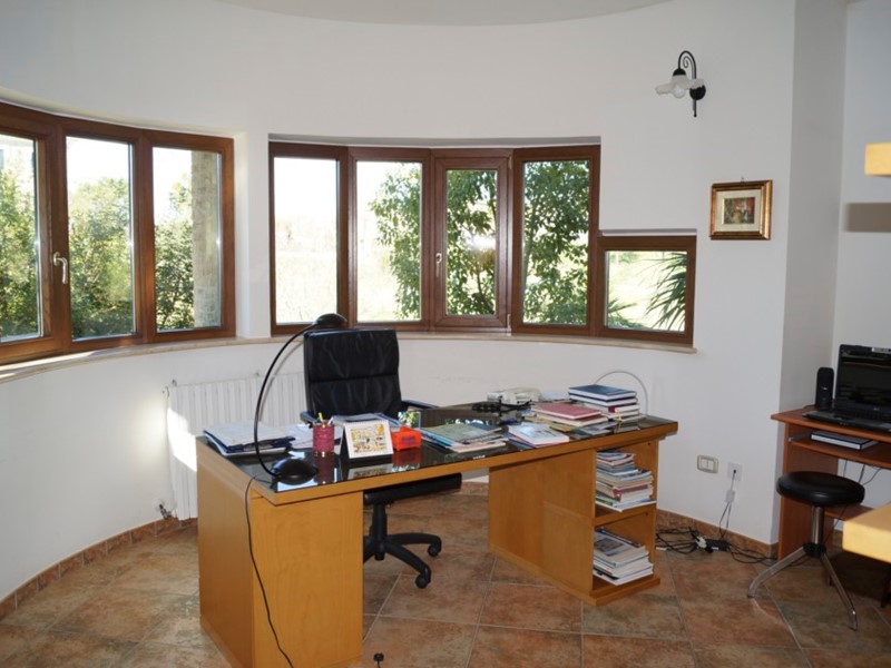 Villa prestigiosa di mq 230 dislocata su un unico livello e composta da ampio salone, cucina abitabile di grandi dimensioni, tre camere da letto, uno studio, una saletta per la musica e due bagni. L'immobile dispone di un piano sottostante di 500 mq. circa, con garage per diverse autovetture, locali cantina, taverna, un appartamento allo stato grezzo con un'ampia zona giorno, una camera da letto matrimoniale e bagno; Completa la proprietà un ampio giardino / parco delle dimensioni di oltre 4000 mq., arricchito con piante ornamentali, da frutto, uliveto di oltre 70 piante, piccola rimessa attrezzi da giardinaggio, due forni e casetta per gli animali. Un ampia zona lastricata intorno alla casa di 650 metri circa agevola la manovra ed il parcheggio per diverse auto. Con prezzo da computare separatamente è possibile acquistare un terreno agricolo di mq 18000 con pozzo per l'irrigazione.