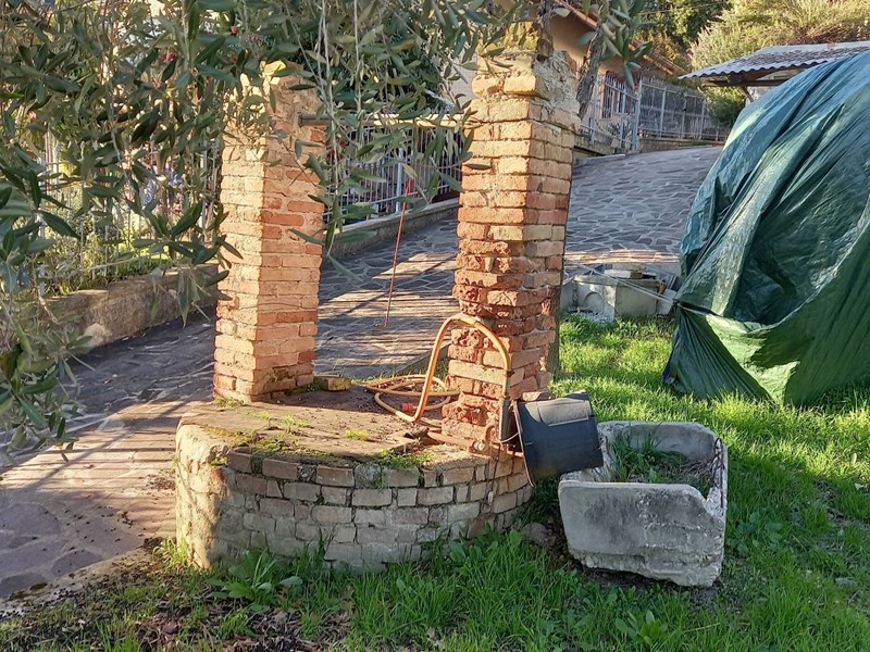 Completa la proprietà un ampio spazio esterno recintato di circa 600 mq. con doppio ingresso carrabile, giardino con pozzo e aree pavimentate.
