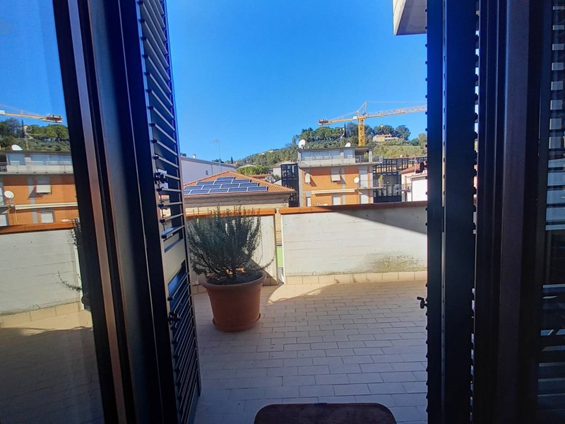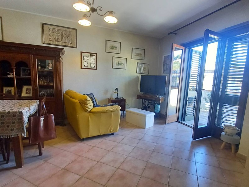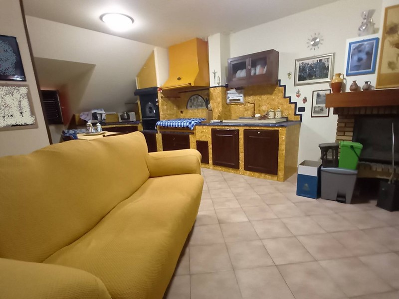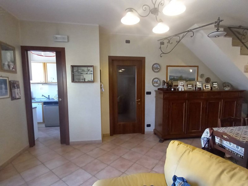 Appartamento: ingresso su ampio soggiorno, cucinotto, disimpegno, 3 camere (1 matrimoniale con bagno, 1 doppia e 1 singola), 1 bagno con doccia e 2 balconi abitabili oltre a scala di accesso al piano superiore;