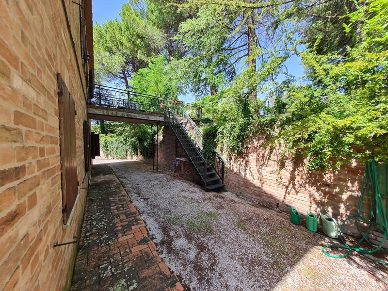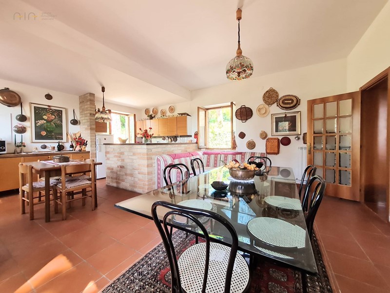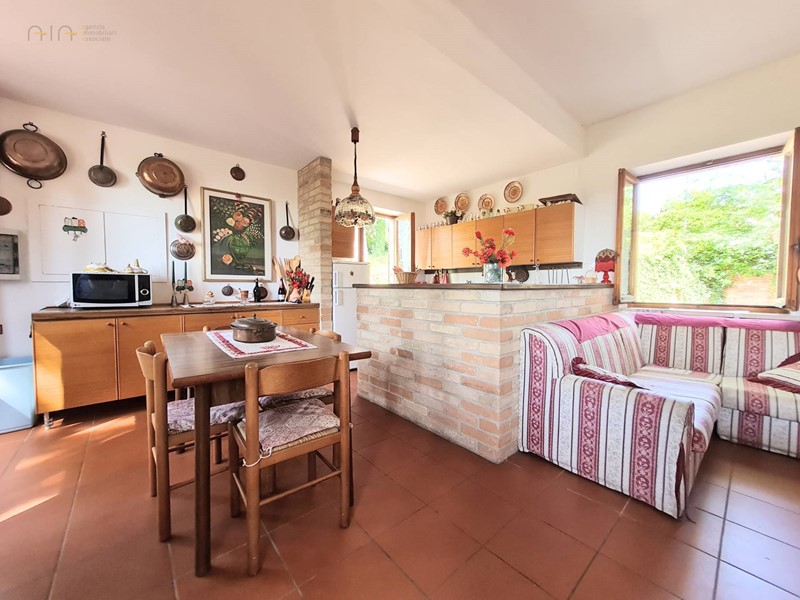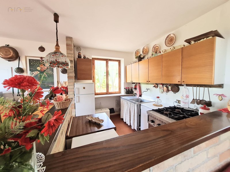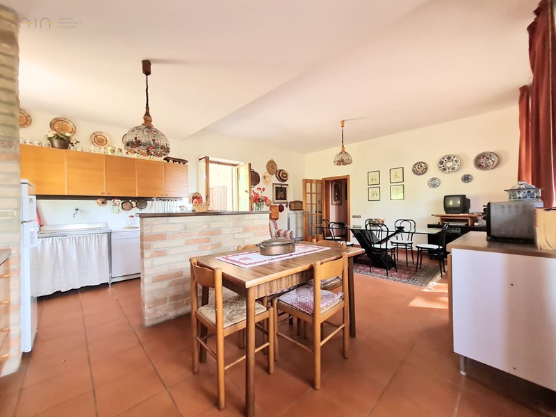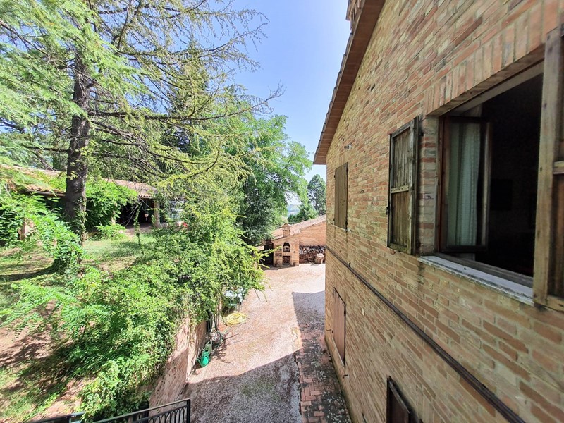 Il casale si sviluppa su due piani collegati internamente mediante scala in legno pregiato ed esternamente dalla tipica scala marchigiana.
