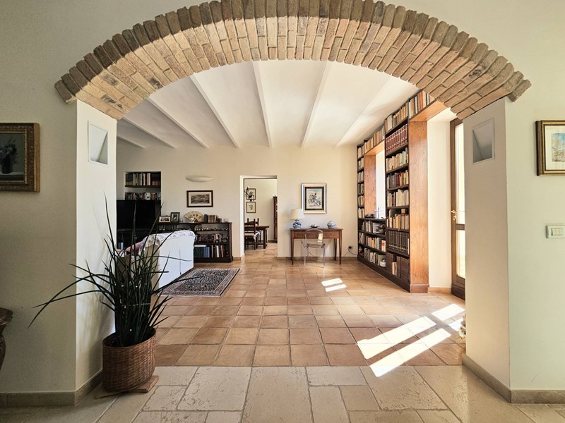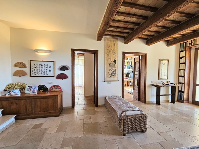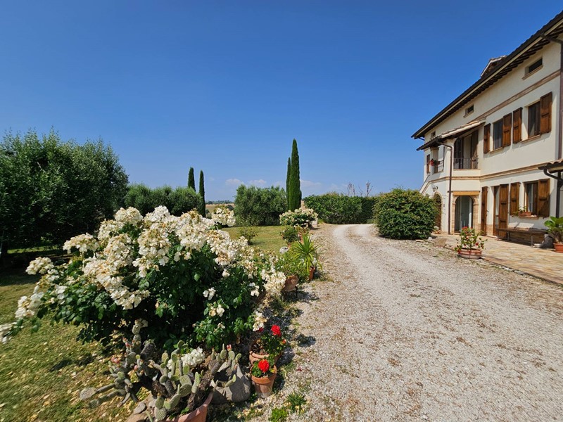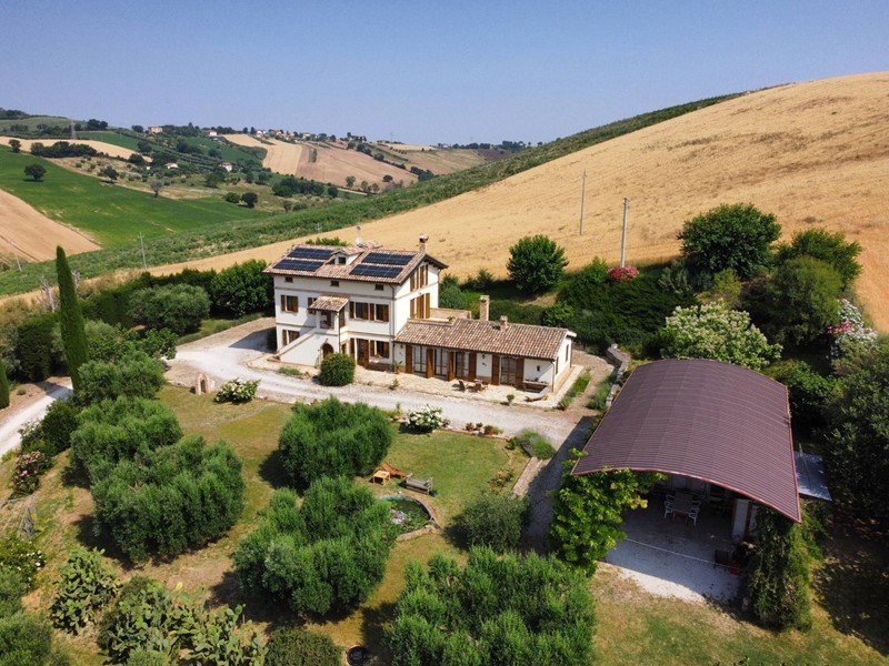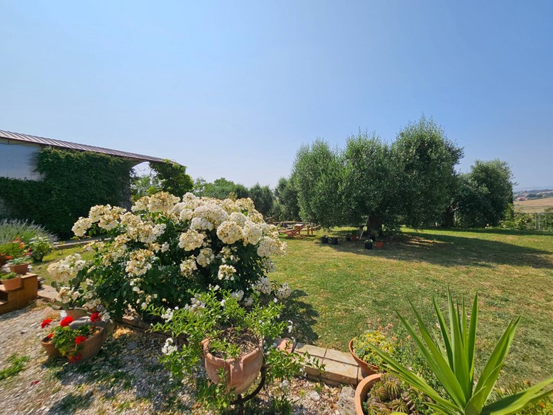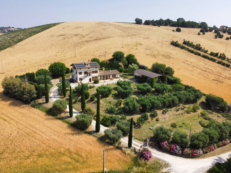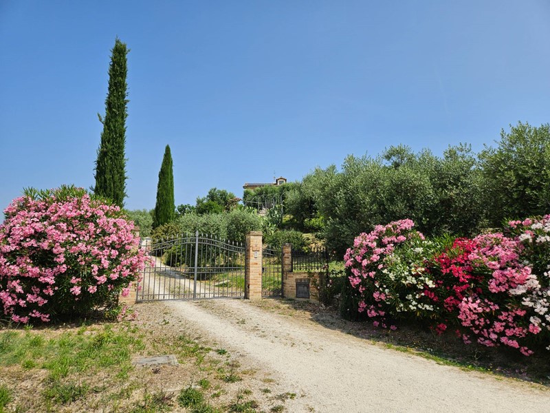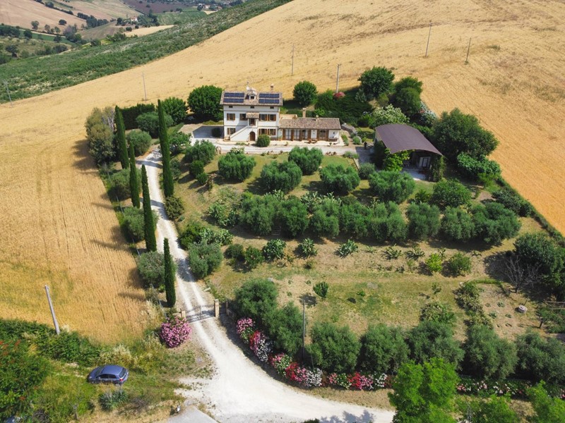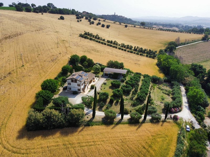 circa 2 km dal centro storico di Montecassiano, in posizione riservata ed estremamente panoramica, caratteristico casale ristrutturato con ampio giardino.