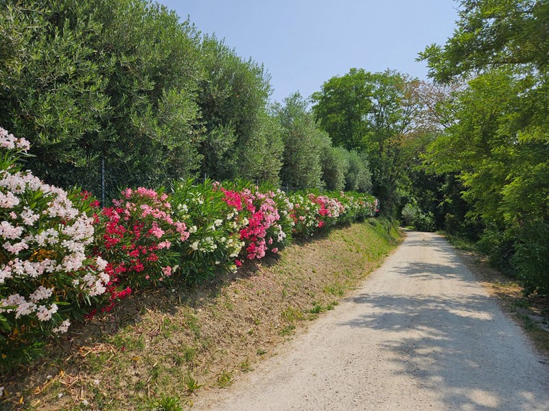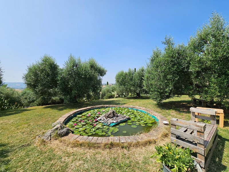 Un contesto incantevole con bellissimi squarci di vista sul panorama circostante. Davvero affascinanti sono i numerosi ulivi presenti così come le piante da frutto e la suggestiva vasca dove crescono ninfee ed abitano attualmente circa 20 carpe Koi.