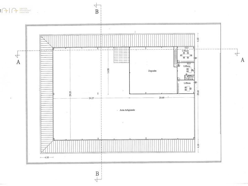 Il fabbricato e' dotato anche di una pensilina perimetrale con struttura metallica della larghezza di circa 4,00 ml.