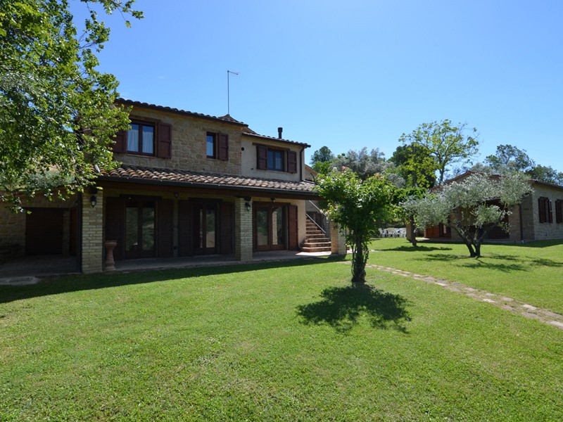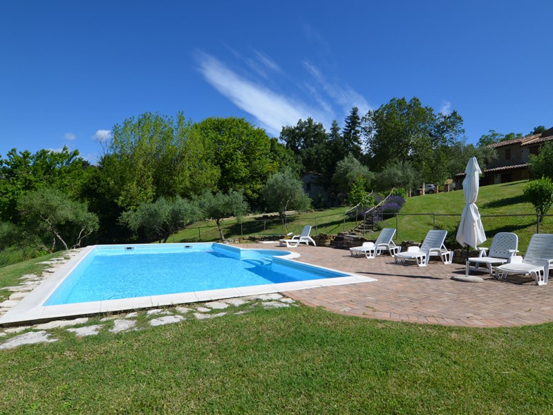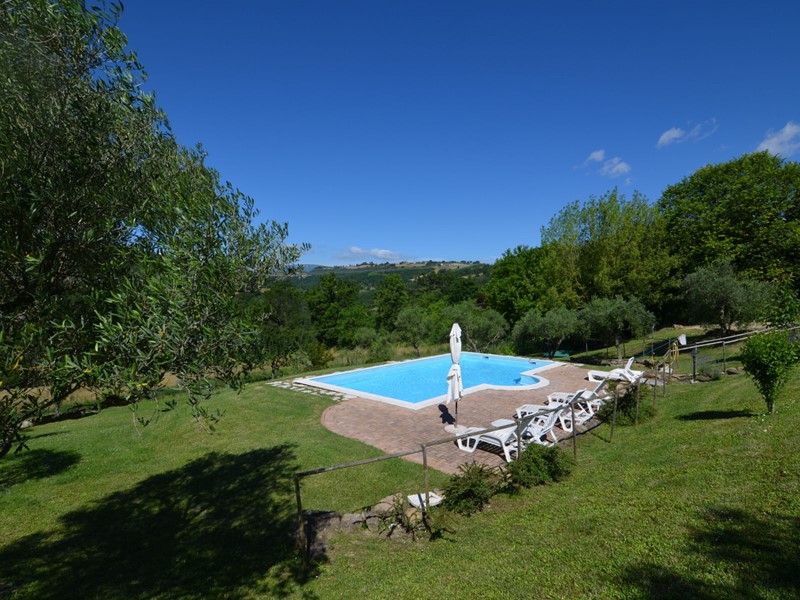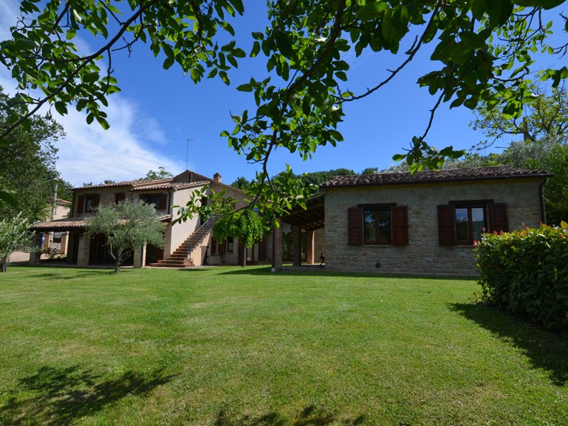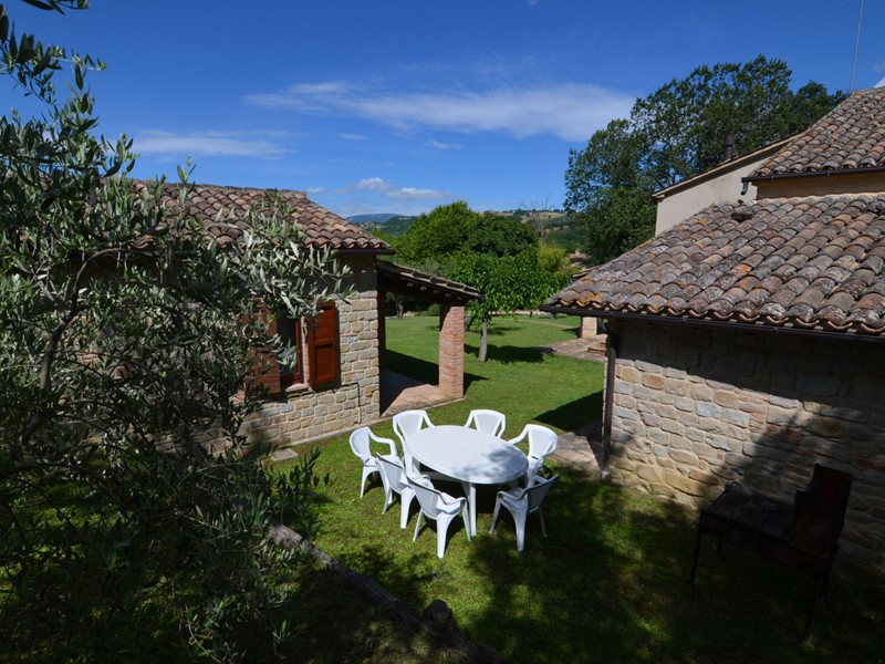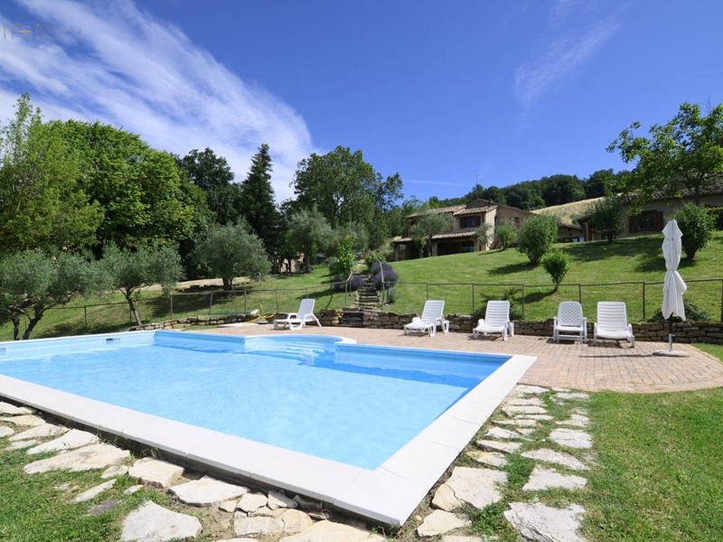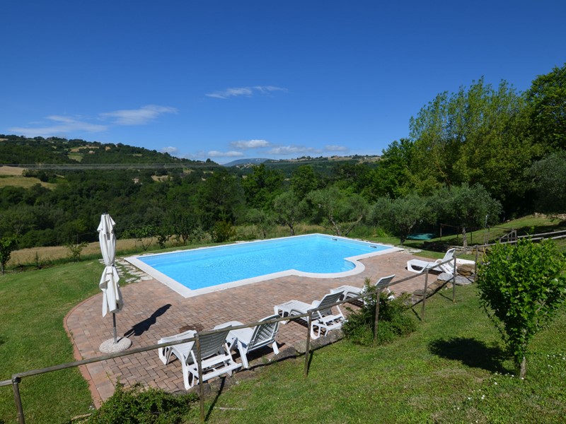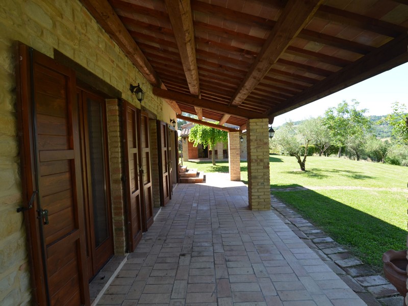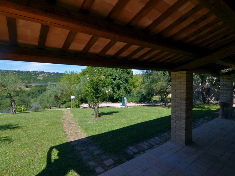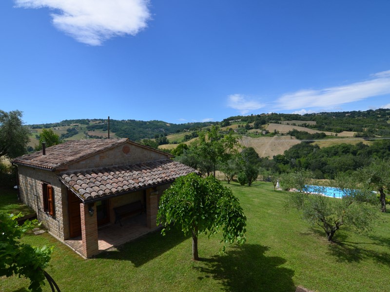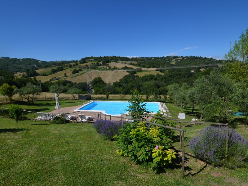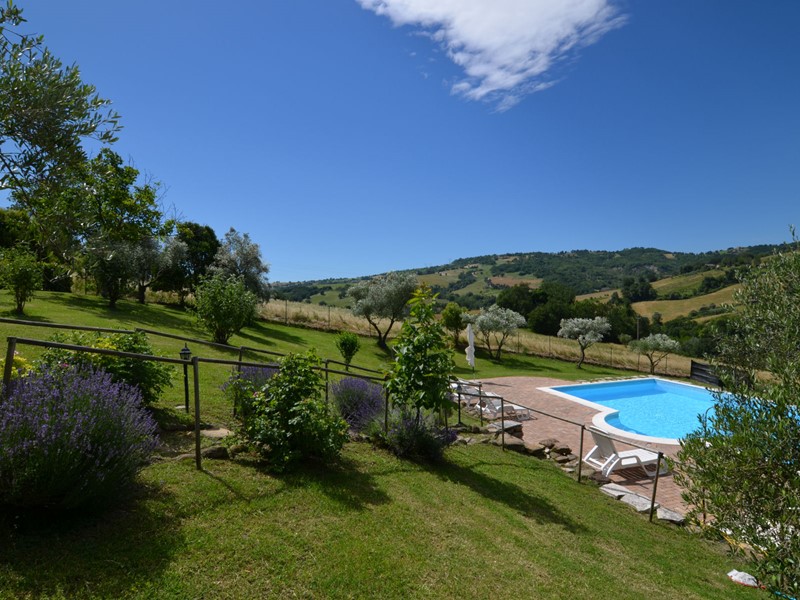 La proprietà dispone di ampio giardino ben sistemato e curato con piscina panoramica che si affaccia sulla Valle e sui Monti Sibillini.