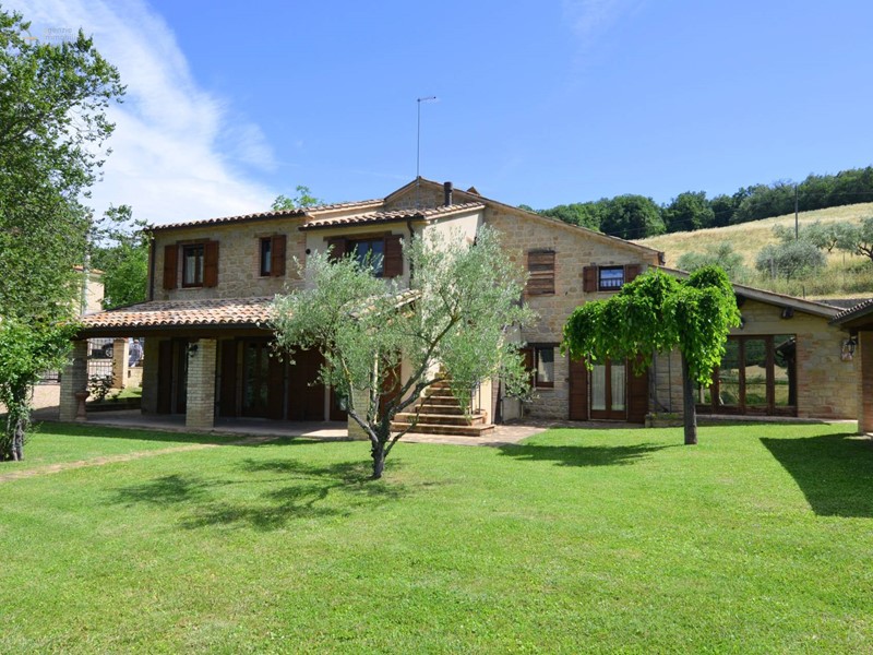 Delizioso casale colonico in pietra ristrutturato con dependance e piscina con vista sui Monti Sibillini.