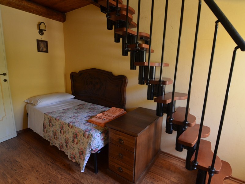 Mediante tipica scala esterna è possibile raggiungere il piano primo dove sono state realizzate quattro camere da letto, tutte con bagno interno privato ed un salottino d'ingresso. Possibile realizzare anche un collegamento con il piano terra.