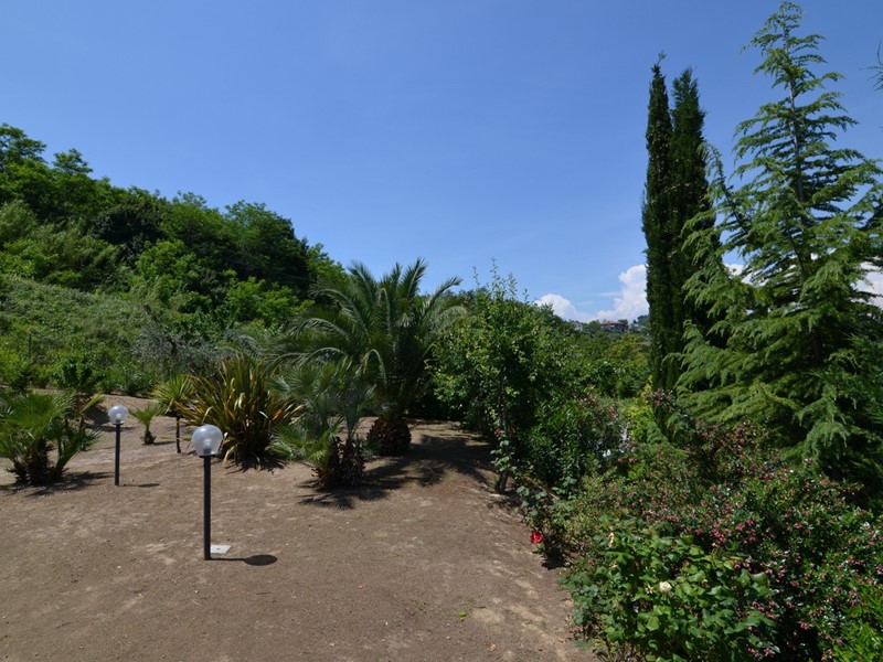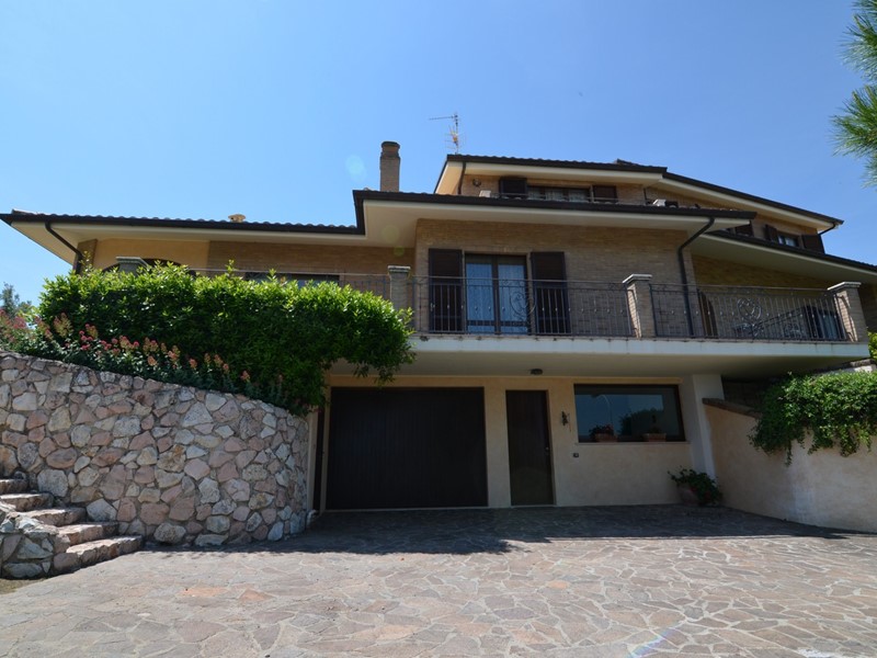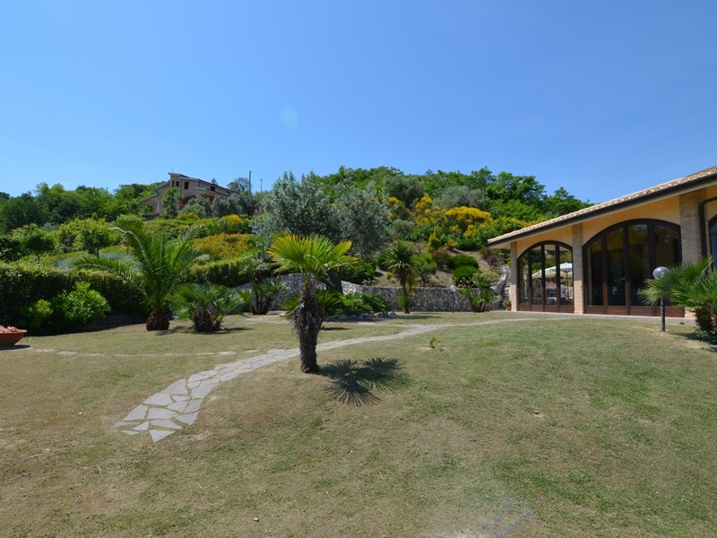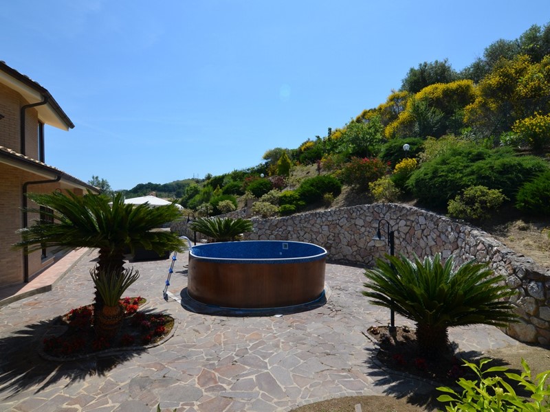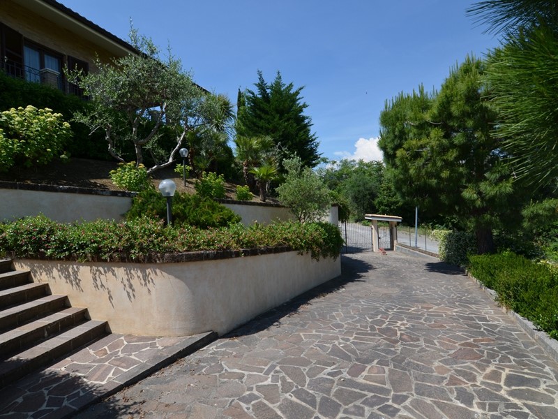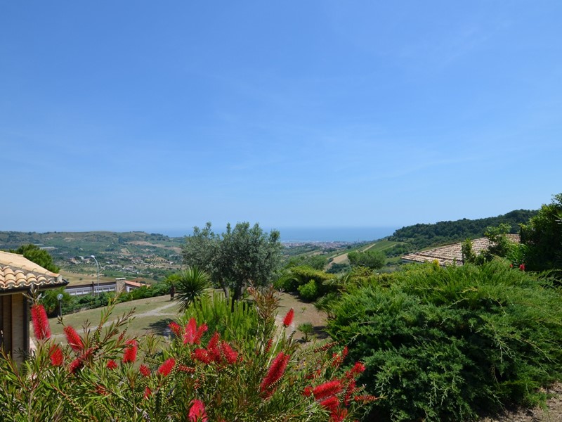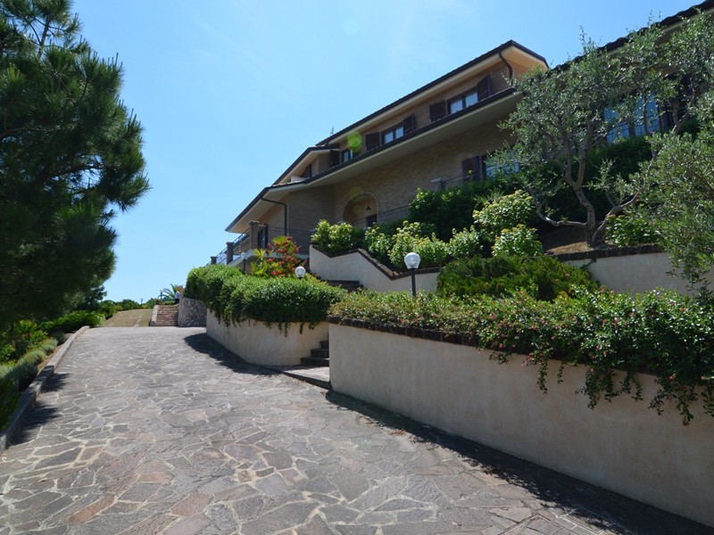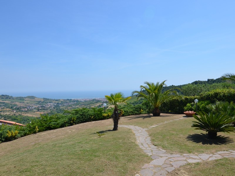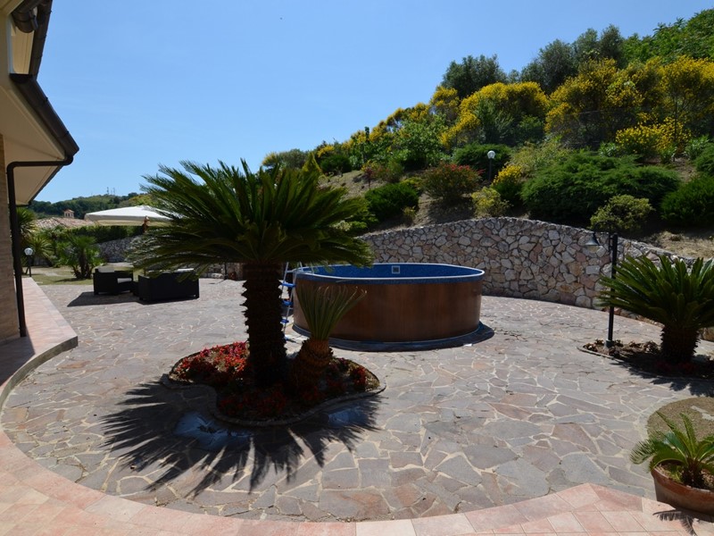 L'esterno della residenza, é costituito da un ampio giardino, di oltre 2.100 mq circa, allestita con un giardino mediterraneo, con piante ed essenze di varie specie, come ulivi, cespugli fioriti, zona di prato all'inglese, il tutto raggiungibile con una suggestiva camminata su un percorso di vialetto interno. L'ingresso alla residenza é stato realizzato con un comodo viale di ingresso, completamente pavimentato. Da ogni angolo della residenza é possibile godere di una stupefacente vista del mare, della costa e della collina, oltre che dell'intera lottizzazione di ville esclusive in cui é posta la casa stessa. Questa abitazione é la residenza ideale per chi é alla ricerca di esclusività, massima indipendenza e piena riservatezza a due passi dalla città.