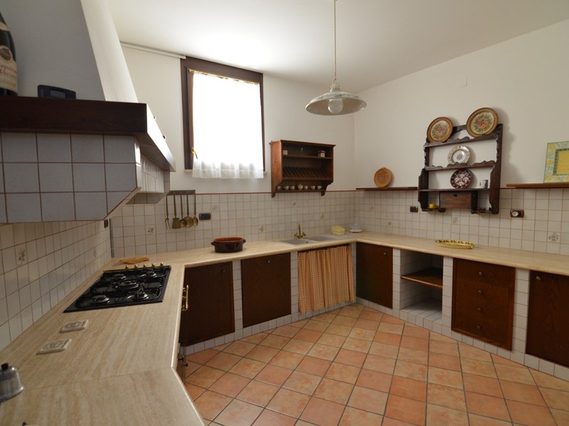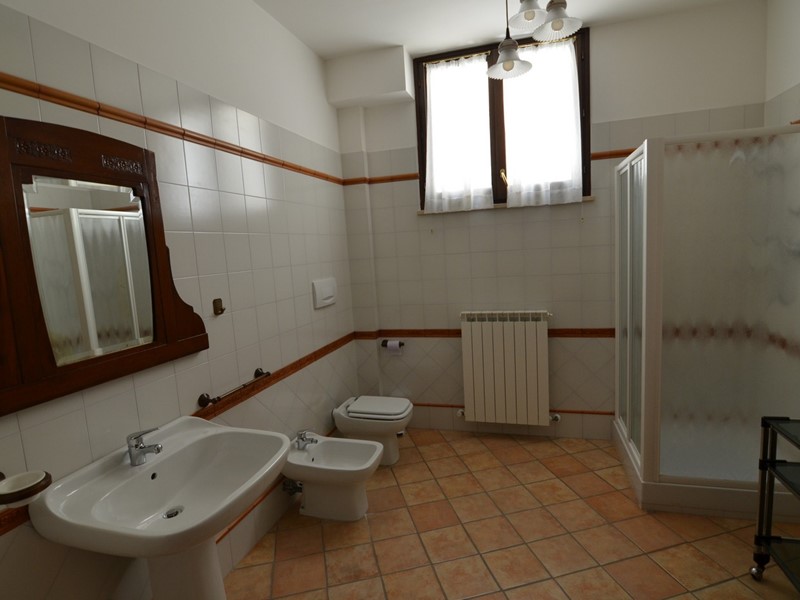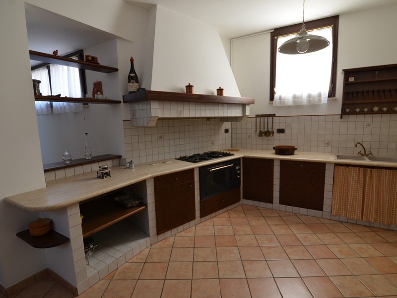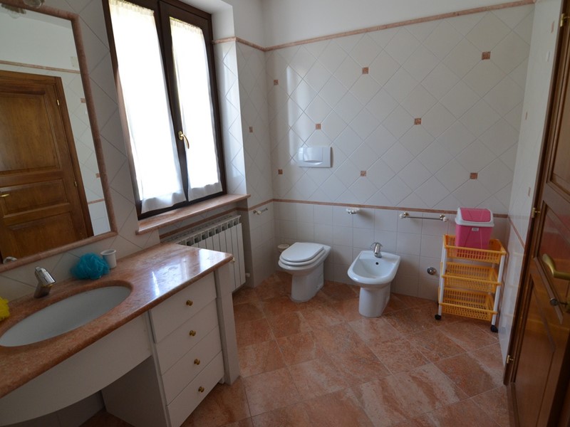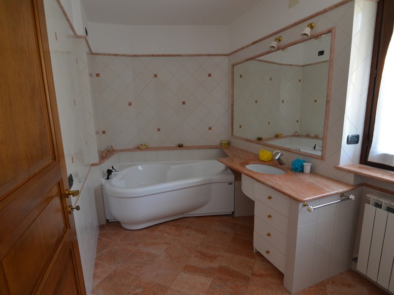 Dal Piano Terra si scende tramite proseguimento della scala interna al piano Seminterrato delle dimensioni di circa 195 mq dove e' stato realizzato un ampio rustico con camino e cucina in muratura, un bagno con doccia e altri vani adibiti a deposito, locali tecnici e stireria. Nello stesso seminterrato e' stato realizzato anche un ampio garage adiacente al rustico delle dimensioni di circa 50 mq per piu' autovetture, accessibile tramite serranda basculante elettrica e comunicante con l'unita' abitativa.