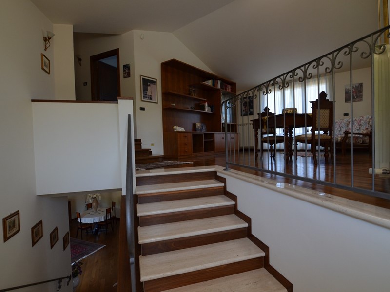Piano terreno delle dimensioni di circa 195 mq circa, composto da cucina abitabile, tinello, ampio soggiorno, tre camere matrimoniali, due bagni di cui uno principale con vasca ed uno con doccia. Attraverso una comoda ed elegante scala interna si accede al piano superiore dove sono collocate due ampie camere matrimoniali, un bagno con doccia e uno spazioso salotto che all'occorrenza puo' essere adibito ad ulteriore stanza da letto, della superficie di circa mq 75 e un balconcino di mq 7.