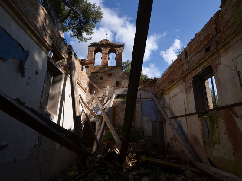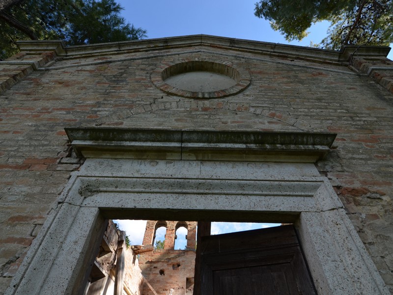 A poche decine di metri dalla Villa insiste ancora oggi una vecchia chiesetta, ormai diruta ma con ben in evidenza ancora la facciata principale da cui si scorge il suo storico interno.