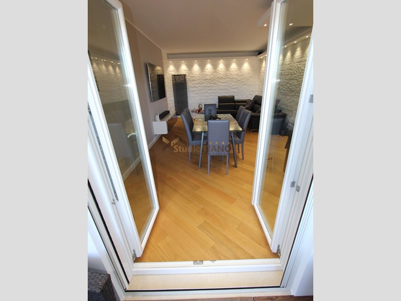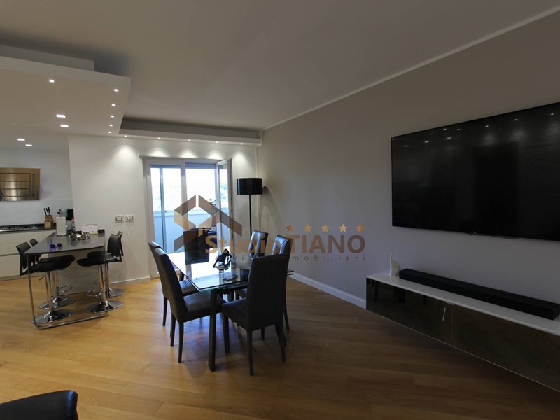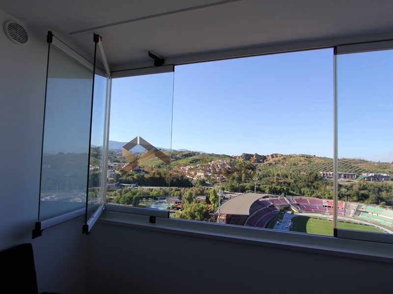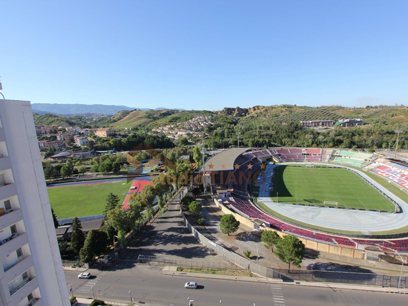 COSENZA - PIAZZA DONATO BERGAMINI - Prestigioso Appartamento posto al 15 (quindicesimo) piano di un fabbricato di recente costruzione facente parte del complesso residenziale "LA FORNACE" realizzato a pochi centinaia di metri dello stadio "SAN VITO MARULLA". L'appartamento è così composto: INGRESSO, AMPIO SALONE CON BALCONE COPERTO A VISTA, CUCINA A VISTA CON PIANO COLAZIONE, DISIMPEGNO ZONA NOTTE, DUE CAMERE DA LETTO DI CUI LA MATRIMONIALE CON PICCOLO BALCONE, 2 WC. L'appartamento visto la posizione del piano, oltre a godere di un'ottima e esposizione e panorama, è stato rifinito con un capitolato di alto livello, sia nei rivestimenti, pavimenti, porte e rubinetterie. Impianto di aria climatizzata, controsoffittature varie, led e vetrata in cristallo sul balcone coperto. La consegna potrebbe avvenire a tre mesi dal preliminare di compravendita e completa di tutti gli arredi.