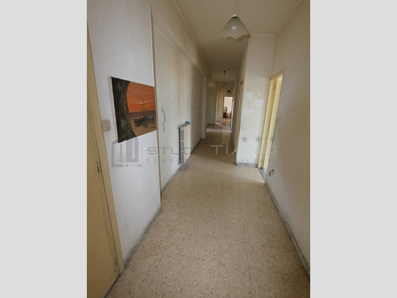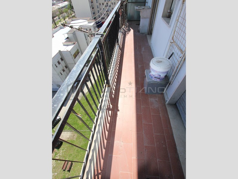 L'immobile, situato al sesto piano di una palazzina del 1967 dotata di ascensore, si presenta in stato libero al rogito e gode di una luminosa esposizione Nord-Est. L'ingresso si apre su un ampio disimpegno che conduce alla zona giorno composta da una spaziosa cucina abitabile con balcone e un ampio e luminoso soggiorno.