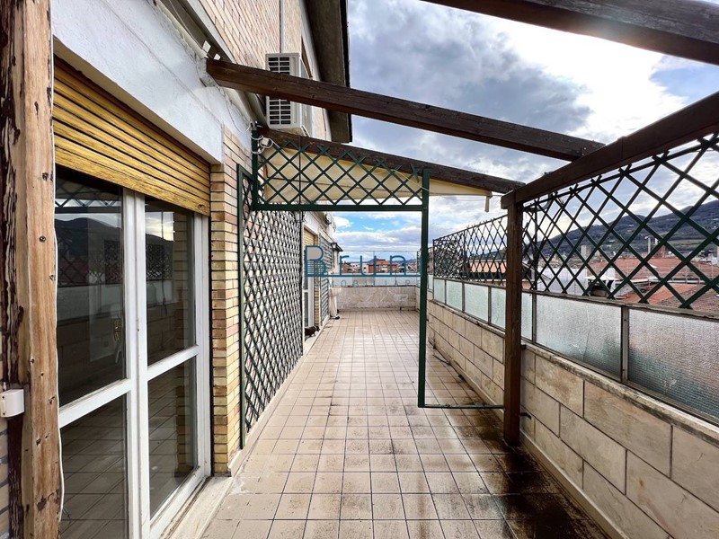 Così composto: secondo piano, ingresso su disimpegno, ampio soggiorno con accesso a terrazzo di circa 28 mq, cucina abitabile con balconcino verandato, un bagno con finestra.