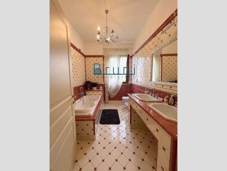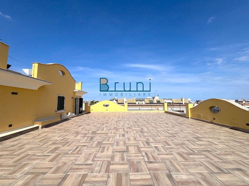 Composto da: ingresso, ampio salone, cucina abitabile, quattro camere di cui tre matrimoniali di cui una con ampia cabina armadio, una doppia con cabina armadio, tre bagni uno di cui uno con vasca idromassaggio, due con cabina doccia, un ripostiglio/lavanderia, oltre a terrazza di circa 150 mq con tettoia in legno, un locale posto al secondo piano collegato allappartamento da scala interna o con ingresso esterno autonomo provvisto di bagno e terrazza di circa 250 mq.