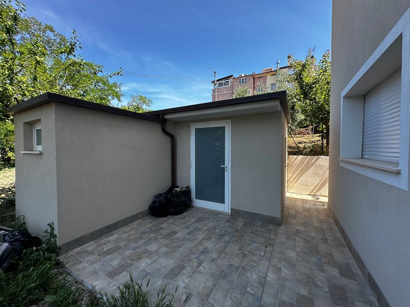 CASA SINGOLA - GIARDINO - FERMO CITTA' - RISTRUTTURATA . L' agenzia immobiliare Aedes propone per la vendita casa singola appena ristrutturata completamente esternamente , riqualificata energeticamente e completa di fotovoltaico da 4,5 kw con batterie di accumulo . Internamente il piano terra è stato totalmente ricondizionato e offre soggiorno con angolo cottura , 2 camere e 2 bagni . L' appartamento al piano I° offre soggiorno con angolo cottura 2 camere e un bagno e è da ristrutturare ad eccezione di infissi e caldaia . Il piano sottotetto è organizzato in 3 stanze di cui 2 a ripostiglio e una utilizzabile come stanza hobby accessoriata di ampio terrazzo . TETTO NUOVO E COIBENTATO . FOTOVOLTAICO . La casa inoltre dispone di ampio giardino privato con accesso carrabile e casotto uso rimessaggio . L' IMMOBILE PUO' ESSERE FACILMETE UTILIZZATO COME 2 APPARTAMENTI DISTINTI CHE COME CASA SINGOLA ( PIANOTERRA GIORNO E PIANO PRIMO NOTTE ) . C.e. '' D'' Rif B466 Prezzo 337.000,00