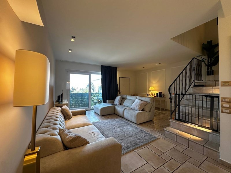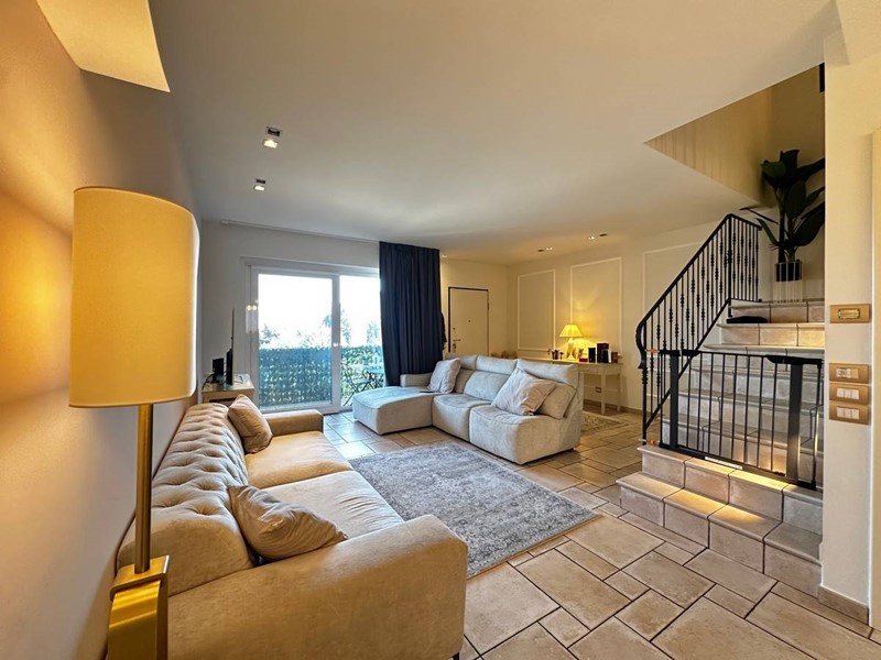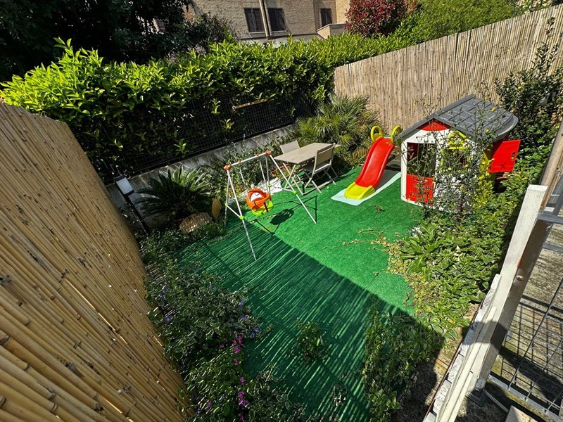 VICINISSIMO A PORTO SAN GIORGIO - VISTA MARE - GIARDINO PENSILE - GARAGE - ARREDATO . L' agenzia immobiliare Aedes propone per la vendita in località San Michele appartamento DUPLEX di recente costruzione in perfette condizioni . L'unità immobiliare è collocata ai piani I° e II° , è semindipendente e gode di ampia veduta panoramica , terrazzi , giardino pensile e garage doppio . Internamente la distribuzione è molto fluida ed è composta da ingresso su ampio soggiorno , bagno di servizio e cucina abitabile con accesso al giardino pensile tramite una passerella condivisa con il vicino . La parte notte al piano superiore è costituita invece da 3 camere da letto di cui 2 doppie ed una media , ripostiglio , spazioso bagno e 2 balconate a livello . Al piano interrato c'è un ampio garage doppio . Appartamento con finiture di ottimo livello , riscaldamento a terra e climatizzato . Lavori da svolgere : NULLA . C.e. '' E '' Rif B319 Prezzo 348.000,00