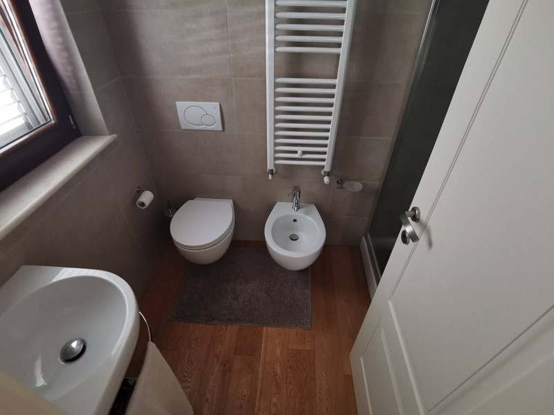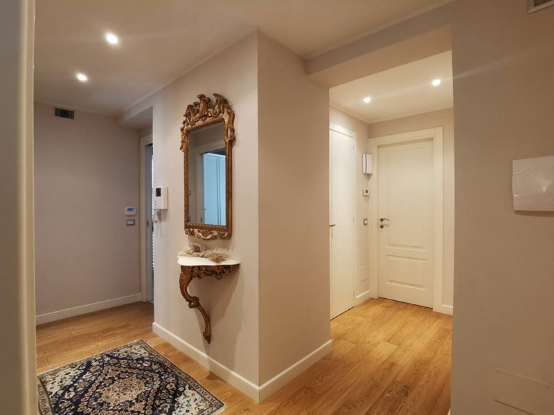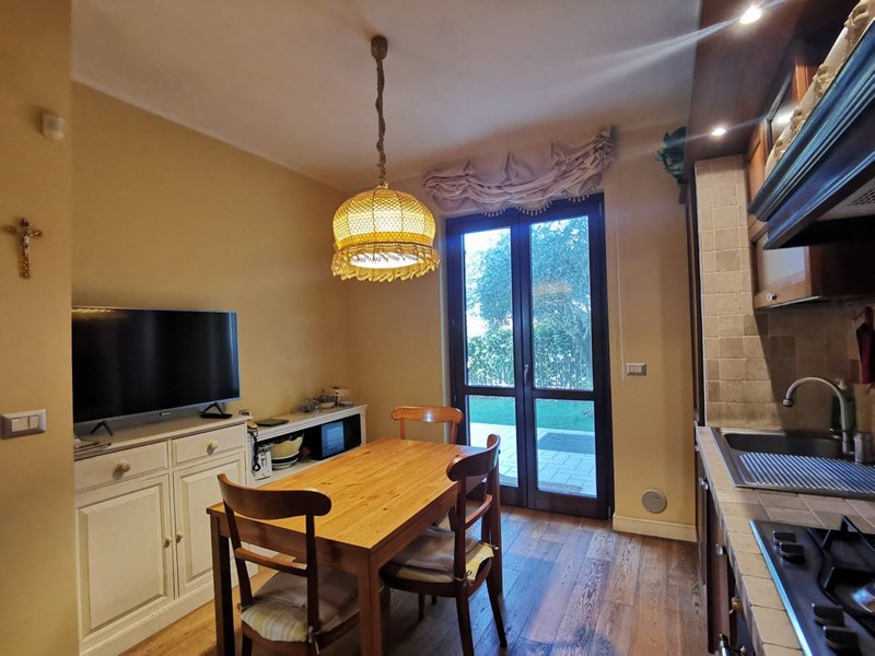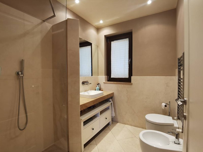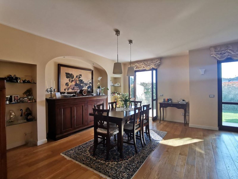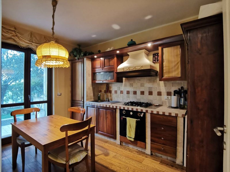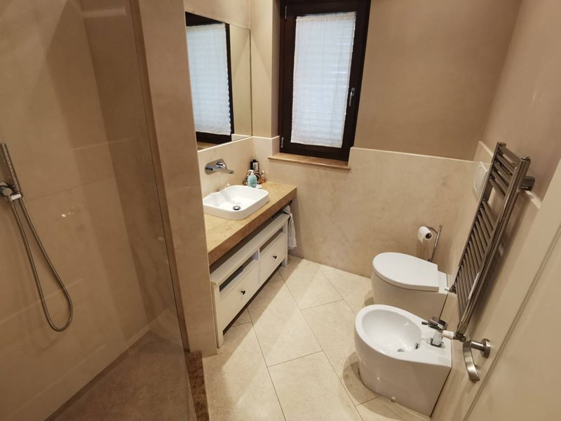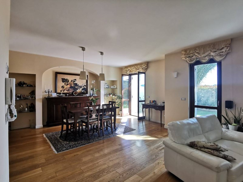 Proponiamo in vendita Villetta a schiera di testa in trifamiliare ricadente nel comune di Monte Urano a 2 minuti dal centro commerciale Oasi e 5 Minuti da Fermo.Il complesso residenziale è di recentissima costruzione,realizzato con materiali performanti per quanto riguarda l' isolamento termoacustico e di ricercatissima qualità per quanto riguarda le scelte adottate nei rivestimenti.I pavimenti sono tutti realizzati in listoni grandi di parquet prefinito che per la scelta effettuata rendono molto semplice arredare la casa sia per un gusto moderno o classico che sia.I bagni sono stati rifiniti con materiali pregiati e le pitture rendono neutri e rilassanti tutti gli ambienti.La localizzazione è ottima per chi ama la campagna ma vuole i servizi in poche centinaia di metri.L'unità immobiliare proposta in vendita è stata pensata fin dal primo momento con lungimiranza è infatti predisposta come 2 unità immobiliari ma divisa come una vera e propria villetta.Al piano strada appena si arriva sono disponibili 2 posti auto di proprietà molto comodi,dal cancelletto si entra nella proprietà privata e sin da subito notiamo l' elevata eleganza dell' immobile con un curatissimo giardino che gira su 3 lati.Entrando in casa ci troviamo in uno spazioso pianerottolo che collega la parte seminterrata ai livelli superiori,continuando sullo stesso livello si accede ad un luminoso e spazioso soggiorno arredato da grandi divani e da un accogliente camino a legna,la parte più riservata è adibita a sala da pranzo,separata troviamo anche una ben attrezzata cucina abitabile, un bagno completo e zona ripostiglio.Scendendo dalla scala si arriva in un grandissimo locale diviso in varie zone ed utilizzato in parte come taverna/studio,bagno/lavanderia, ed in parte cpme svariati posti auto e cantine.Risalendo dalla scala e arrivando al piano primo troviamo il reparto notte ripartito in 3 camere doppie di cui 2 con cabina armadio, una stanza studio e 2 bagni.Il piano è servito anche da terrazzi che sono accedibili dalle stanze da letto.In ultimo parte del tetto è stata realizzata ed attrezzata come terrazzo solarium.