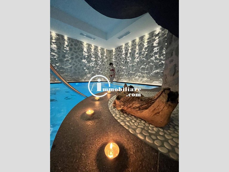 Piano -1: zona salute (comprensivo di scala per il raggiungimento della parte sottostante), la zona massaggi e il solarium. Su questo livello si trovano altresì i locali tecnici, la ski