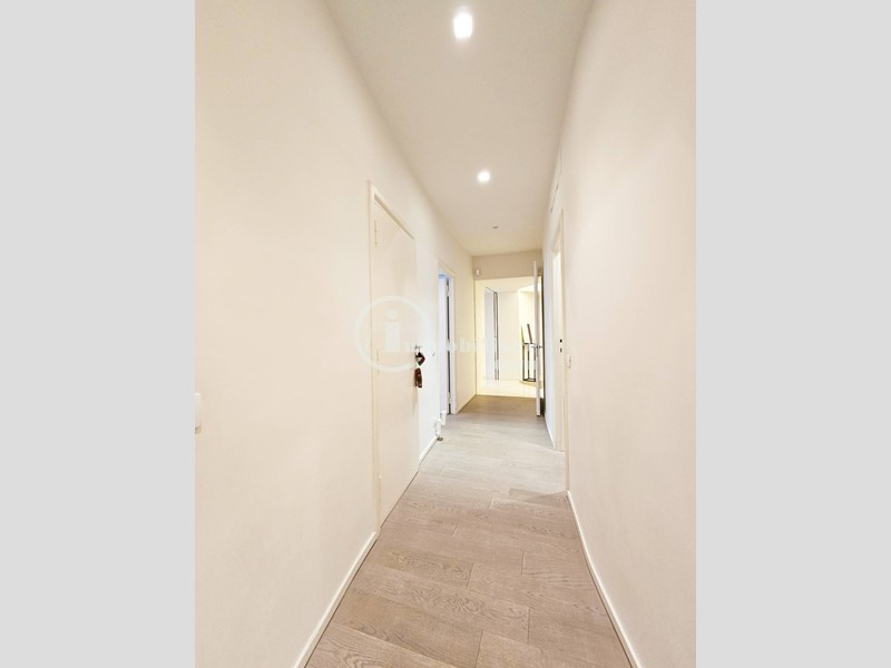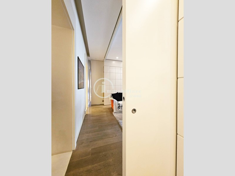 The home we are presenting is a spacious, high first-floor apartment featuring a minimalist design. The interior atmosphere is both relaxing and rejuvenating, thanks to a harmonious balance of warm lighting that creates unique perspective effects, the soft tones of oak parquet, pastel-colored furnishings with steel finishes, as well as glass and Corian materials.