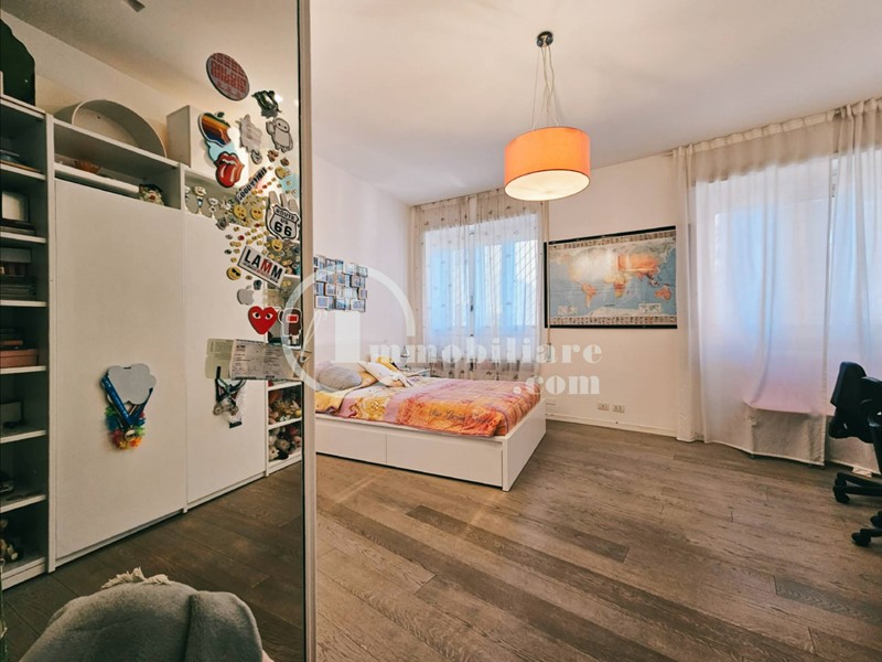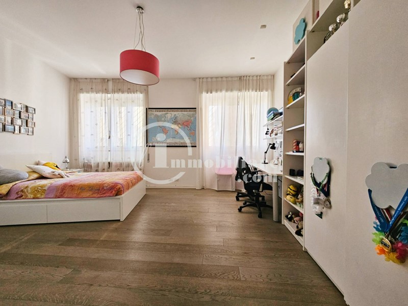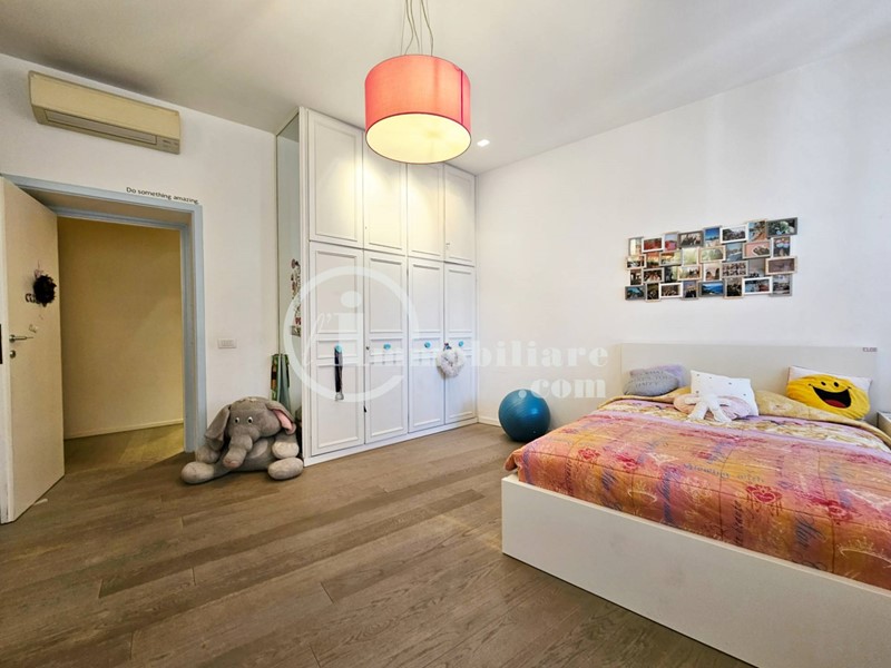 Un'ulteriore ampia camera studio anticipa il disimpegno della zona notte al lato sinistro del corridoio centrale comprende altre due camere, due sale da bagno e un ripostiglio.
