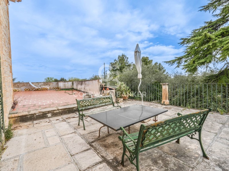 Allesterno, un rigoglioso giardino con piante ornamentali e ulivi secolari accoglie chiunque cerchi quiete e bellezza. Una grande terrazza coperta regala scorci suggestivi e si presta a momenti di relax, colazioni allaperto o eventi privati, valorizzando ulteriormente questa proprietà immersa nella quiete della campagna.