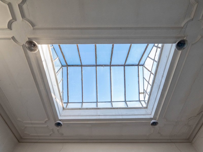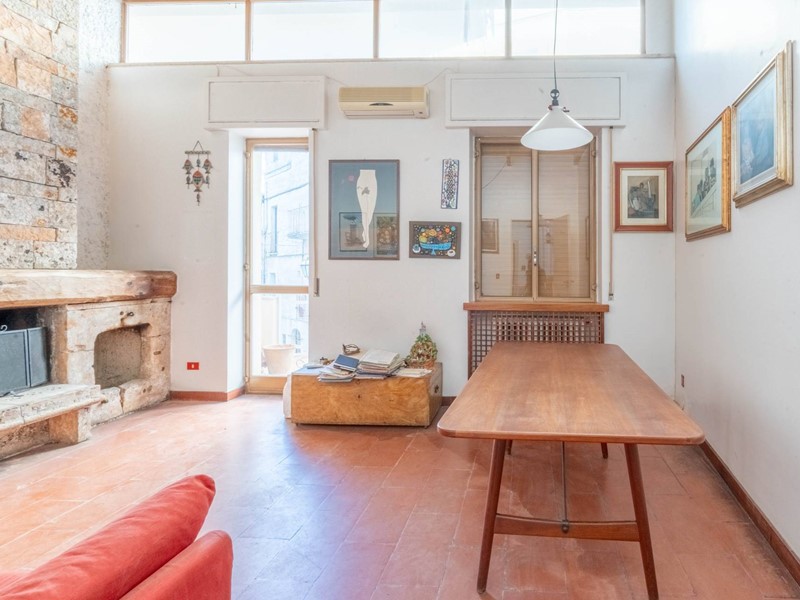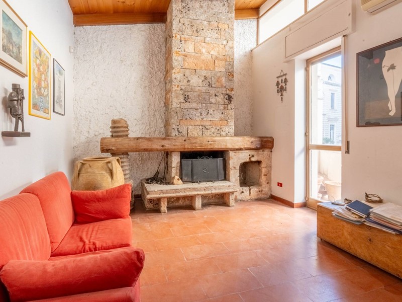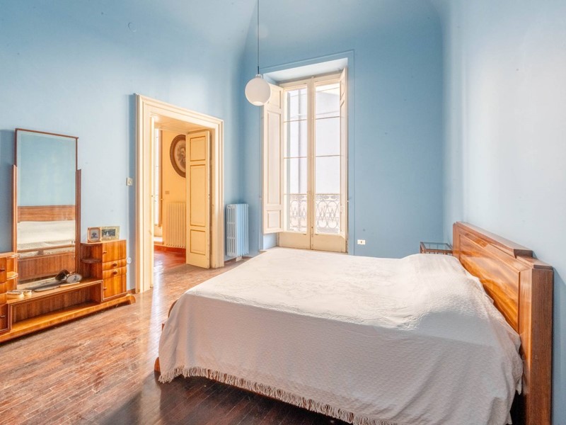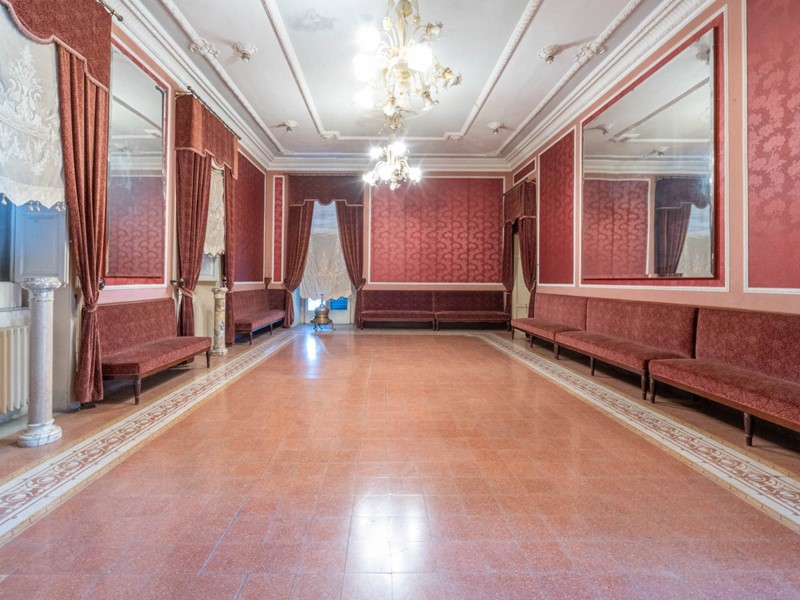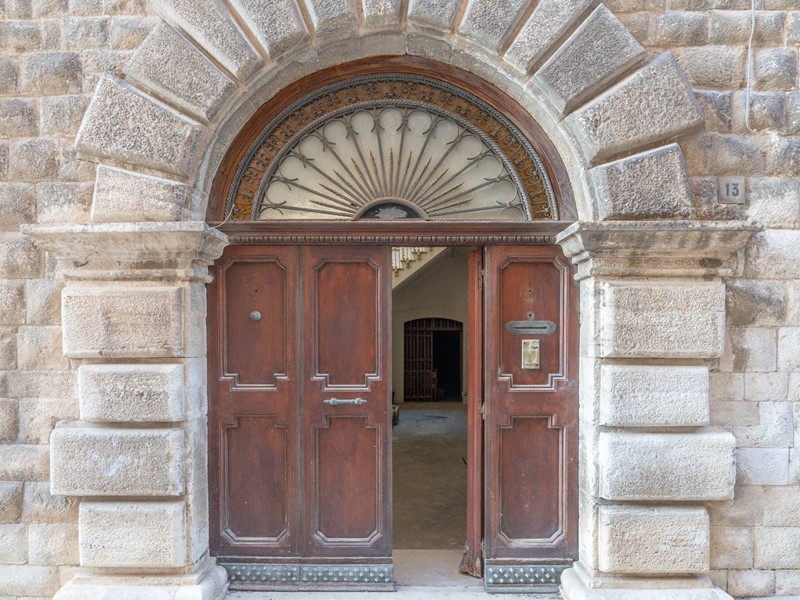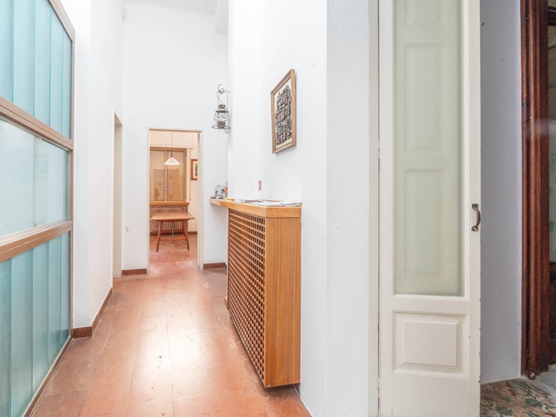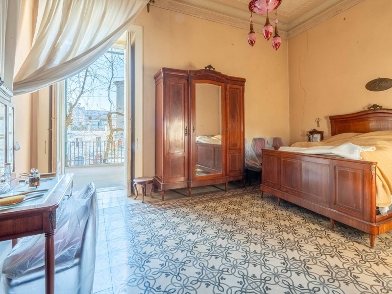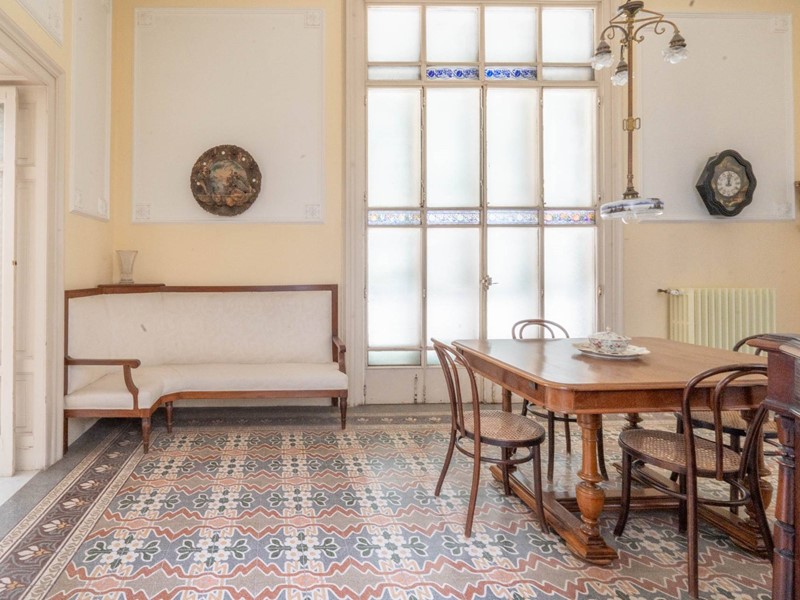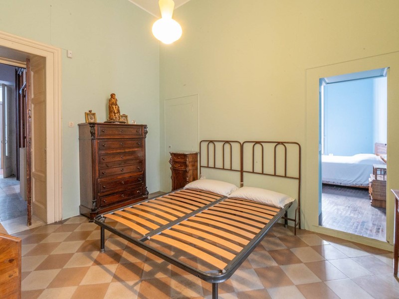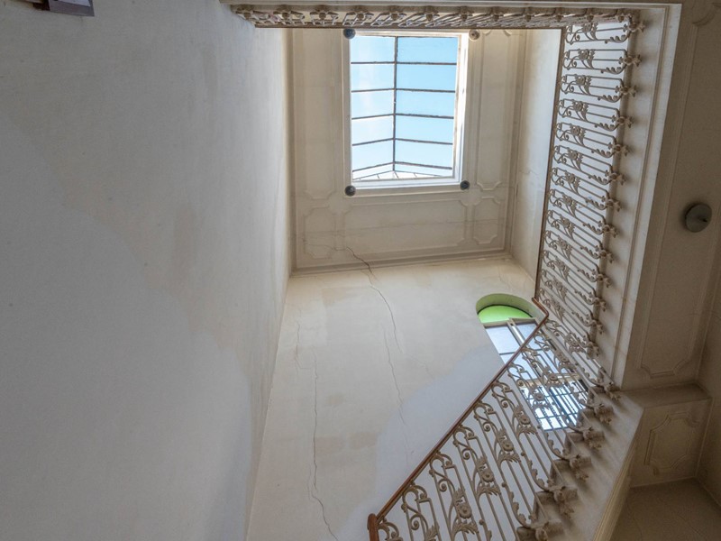 Particolarmente eleganti gli ambienti al piano primo (raggiungibili da una importante scalinata rivestita in pietra che comunica tutti i livelli del palazzo) caratterizzati da disegni geometrici e colorate cementine antiche che ricoprono tutte le stanze, oltre ad una antica cucina realizzata in muratura e rivestita in rame ed un bellissimo camino in pietra. Sono ben 350 circa i metri quadrati di questo piano del palazzo, suddivisi in 16 vani oltre accessori, oltre ad una generosa terrazza che si affaccia sulla rinomata Piazza Umberto I.