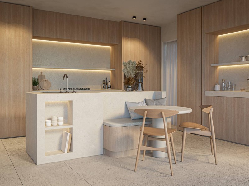 Layout Flessibile La cucina dello chef può essere trasformata in due suite aggiuntive, previa richiesta di variazione del permesso di costruzione, aumentando così la capacità ricettiva della villa.