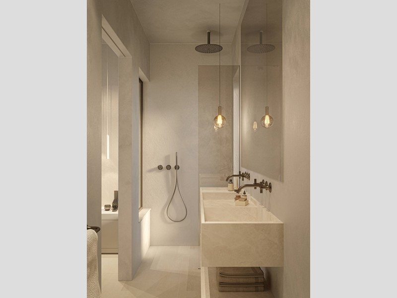 Finiture di Alta Gamma Disponibili I materiali di lusso per i bagni sono già stati acquistati, selezionati con cura da un interior designer per corrispondere esattamente ai rendering 3D del progetto.