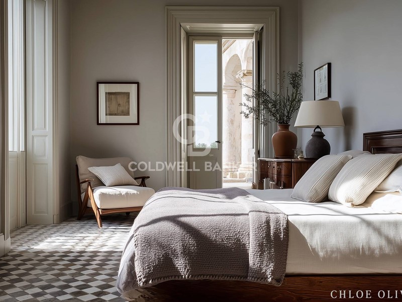 La villa principale, nucleo centrale della proprietà, si estende su una superficie di circa 272 mq distribuiti in 12 vani, caratterizzati da ambienti ariosi, luminosi e ben articolati. Quasi tutte le stanze conservano i pregiati pavimenti storici pugliesi, che impreziosiscono ulteriormente il valore storico e culturale dellimmobile. Le ampie terrazze panoramicheoffrono una suggestiva vista sul mare Adriatico, regalando scorci unici e momenti di autentica bellezza a ogni ora del giorno.