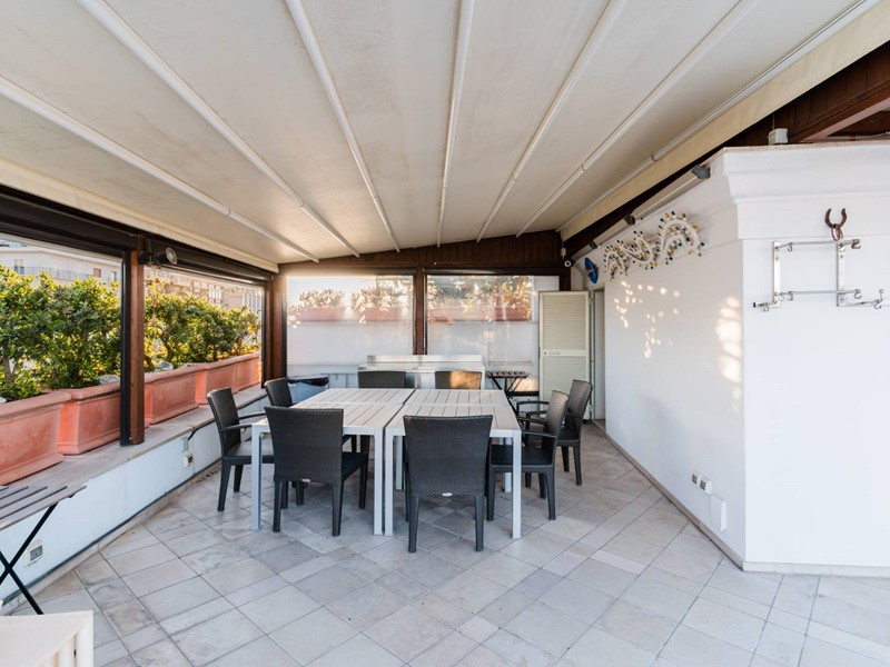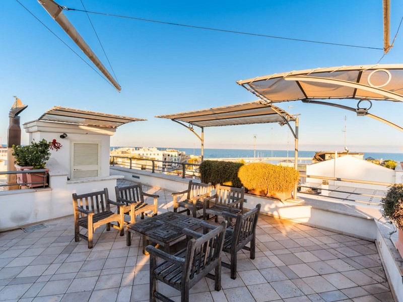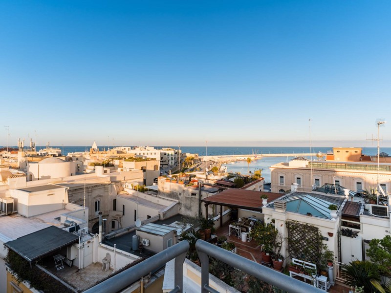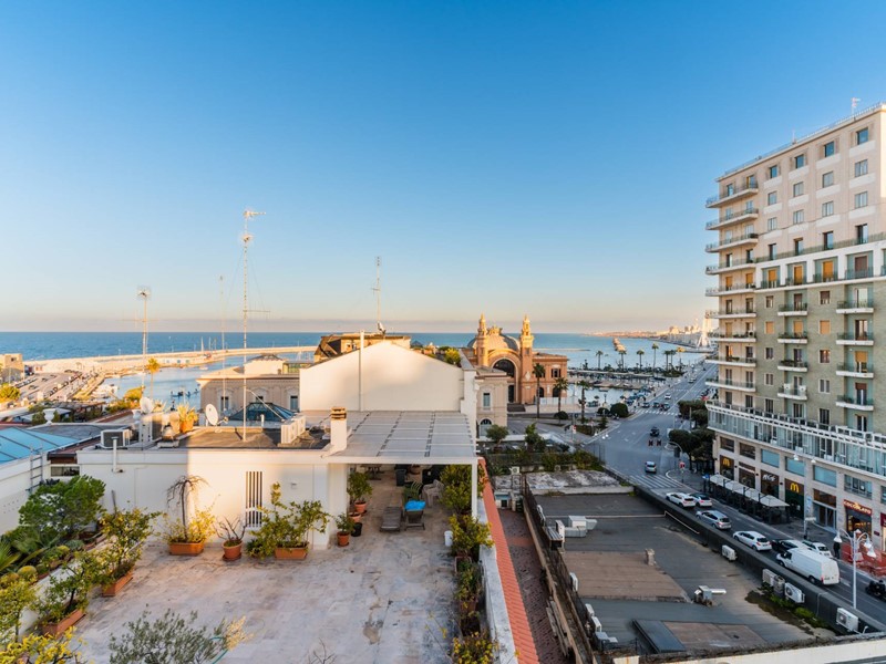 Fiore allocchiello è la terrazza panoramica di 100 mq, con vista spettacolare sul Teatro Margherita, sul mare e sul Lungomare di Bari, attrezzata con tutti i comfort, inclusa una cucina. Gli spazi comuni includono cantinola, zona lavanderia e un piccolo office al piano terra.