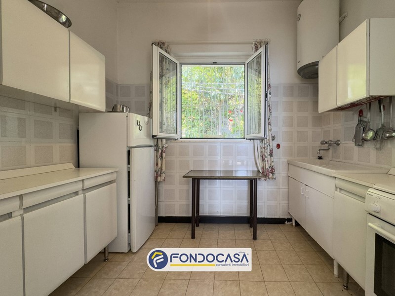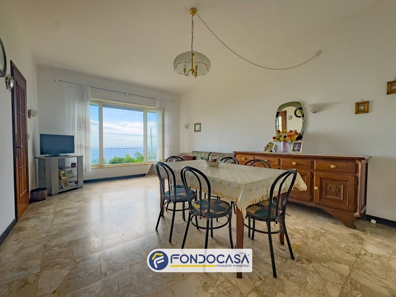 Adiacente al soggiorno, troviamo un cucinotto funzionale. Dalla sala si accede a una splendida veranda anch'essa con vista mare, un ambiente incantevole dove trascorrere momenti di relax o gustare una cena al tramonto. Completano il piano una spaziosa camera matrimoniale ed un bagno finestrato con doccia.