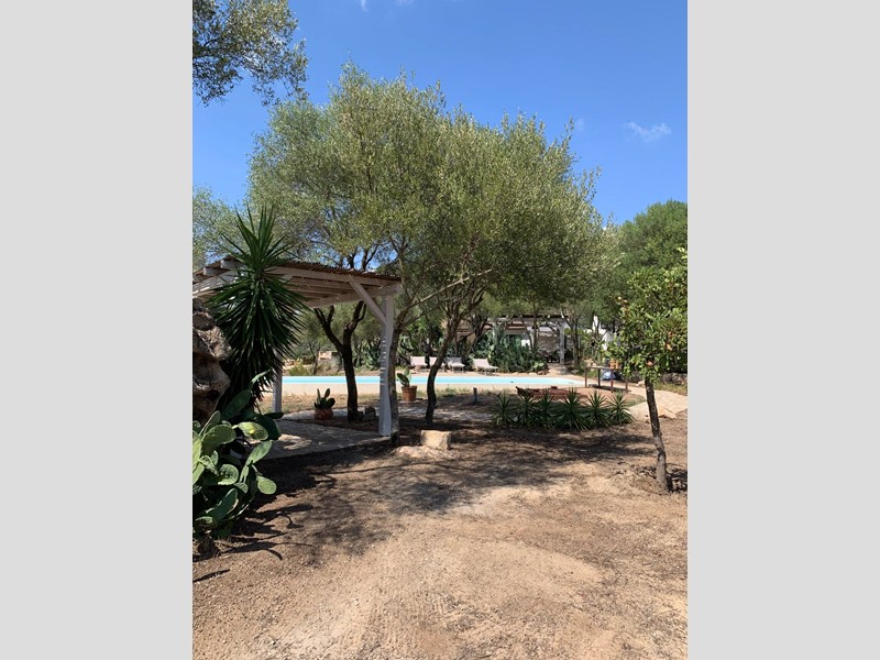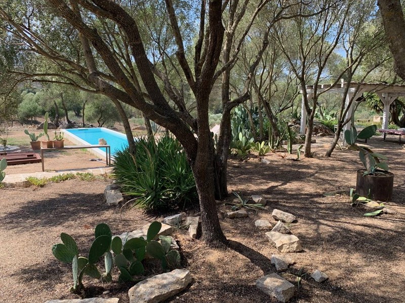 All'esterno, una moderna **piscina** si inserisce armoniosamente nel contesto naturale, creando uno spazio ideale per rilassarsi e godere della tranquillità che solo la campagna sarda può offrire.
