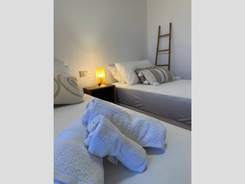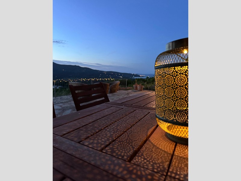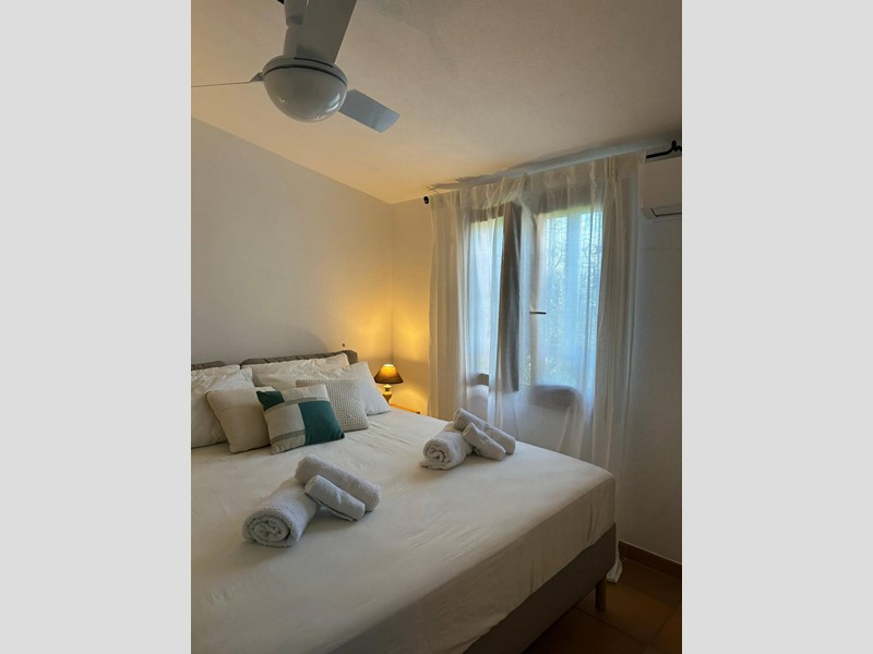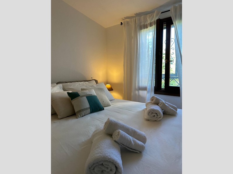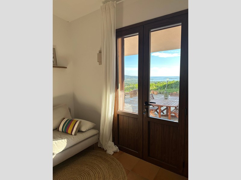 Unità principale (livello superiore): 3 camere da letto, 2 bagni, ampio soggiorno, cucina abitabile e una splendida veranda che domina la baia di Cugnana.