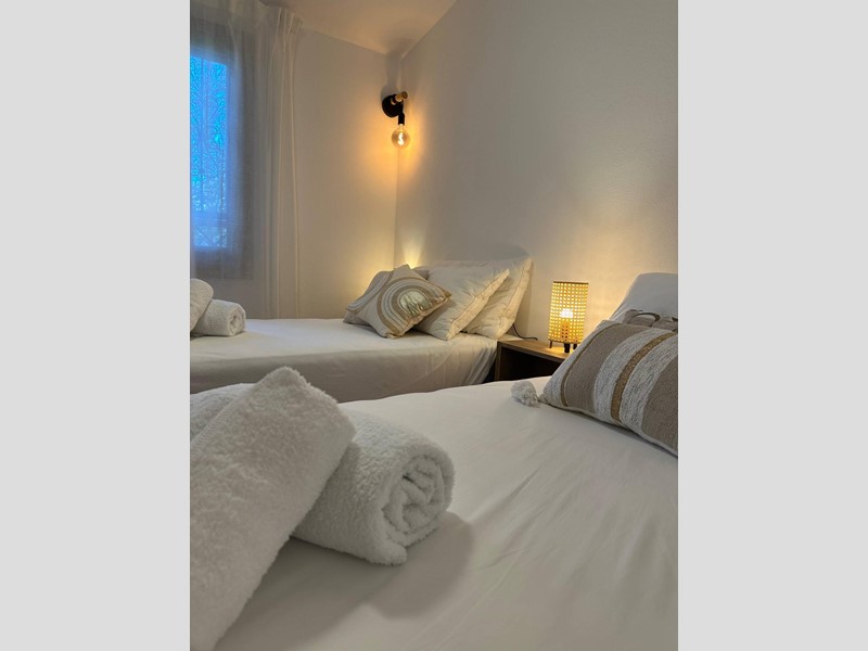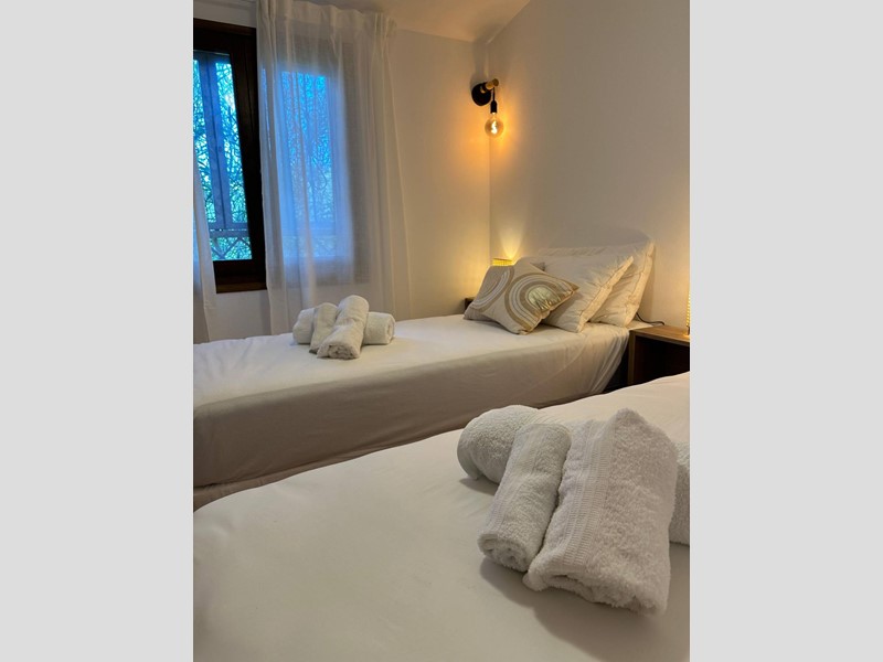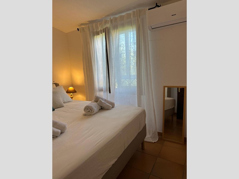 Unità secondaria: 2 camere da letto, 2 bagni, soggiorno con cucina a vista, caratterizzato da un design contemporaneo e funzionale. Laccesso diretto agli spazi esterni invita a vivere il giardino e la piscina privata.