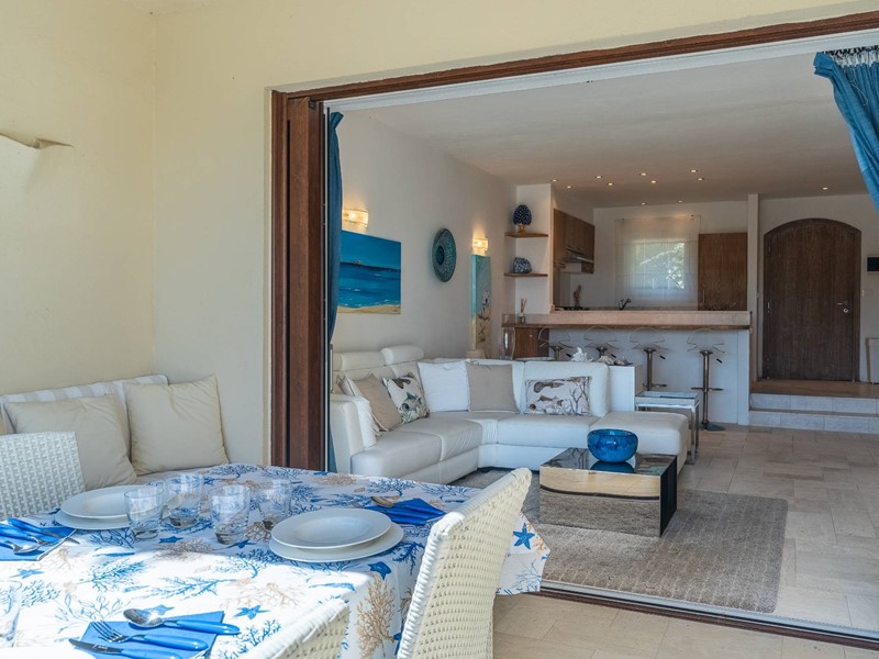 Gli interni riflettono uno stile minimal contemporaneo, pensato per garantire comfort e praticità durante tutto lanno. Tra i punti forti dellimmobile, un patio esterno con divano integrato, perfettamente collegato alla verandauno spazio accogliente per aperitivi e serate intime in un contesto marino senza paragoni.