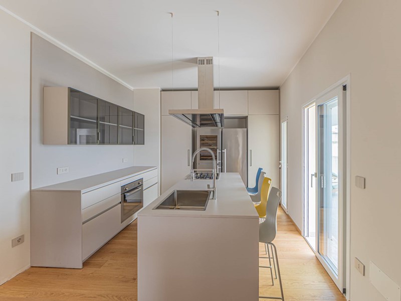 Allingresso si viene accolti da un ampio doppio soggiorno inondato di luce naturale, affacciato su due terrazze spettacolari. Gli interni, curati nei minimi dettagli, sono un perfetto connubio tra design moderno e materiali di altissimo pregio. La cucina americana con isola centrale è perfetta per chi ama cucinare e ricevere in uno spazio conviviale ed elegante.