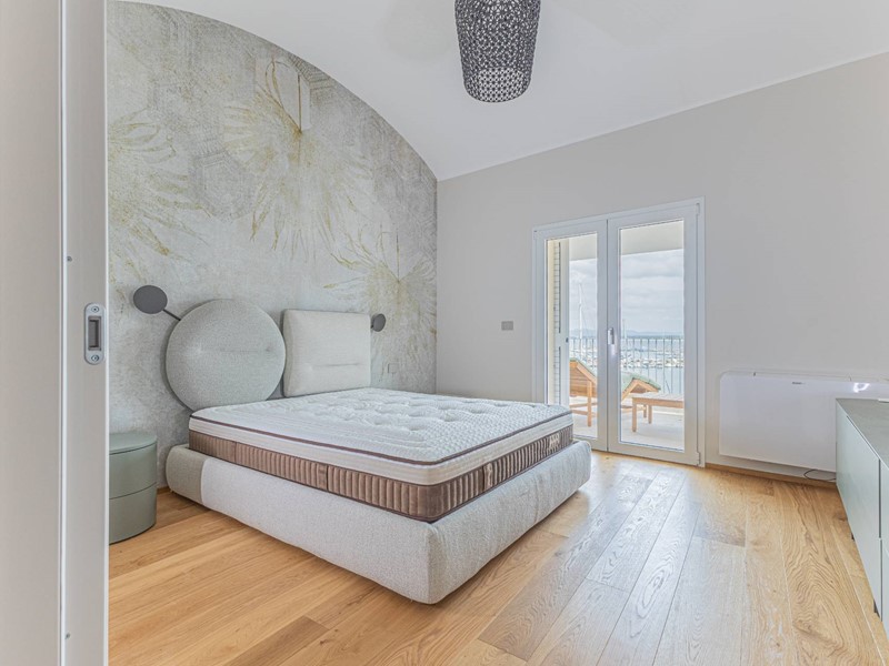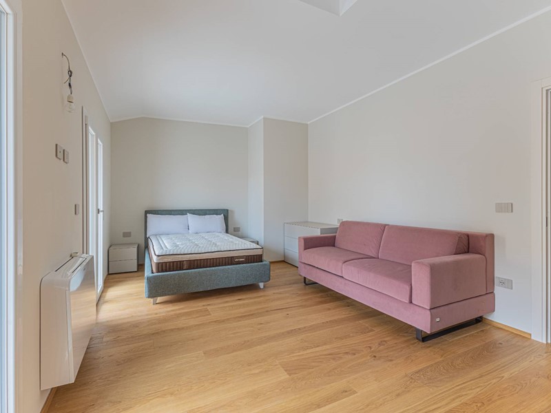 La zona notte si compone di due suite matrimoniali, ognuna con bagno privato e armadiature su misura. La camera padronale include anche una comoda cabina armadio. Tutto è studiato per offrire massima riservatezza e funzionalità.
