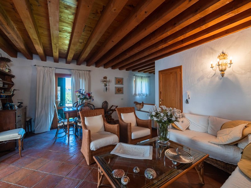 Al piano terra si trova un ampio soggiorno luminoso, dotato di grandi finestre in legno che permettono di godere della vista sul giardino privato.