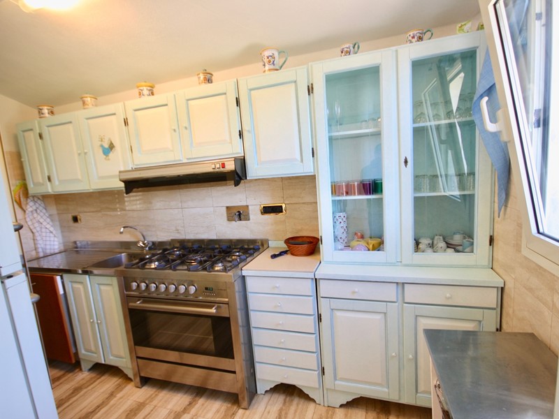 Accanto al soggiorno si trova una cucina abitabile completamente attrezzata, ideale per chi ama cucinare e organizzare pranzi in compagnia. La cucina è separata ma collegata al soggiorno, garantendo una perfetta distribuzione degli spazi. Da qui, si accede ad un balcone e un terrazzo, dove poter godere dei pasti allaperto durante i mesi estivi, immergendosi nel panorama circostante.
