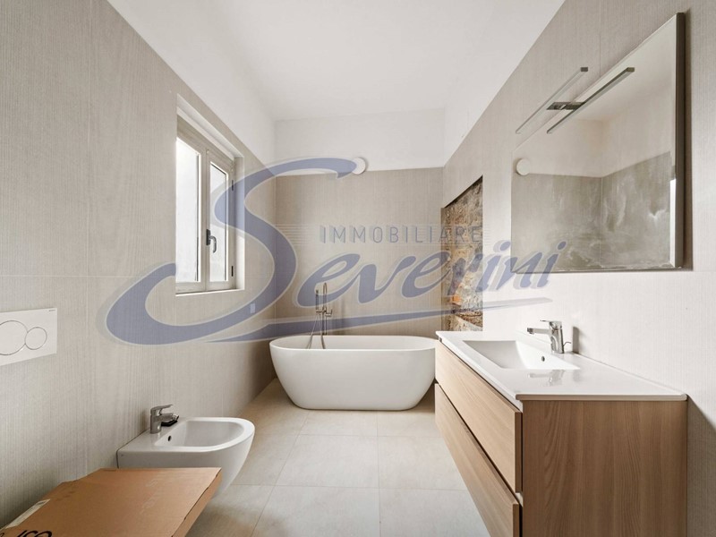 Il bagno è moderno , dotato di vasca e idrosanitari . La superficie totale dell'appartamento è di circa 70 metri quadri.