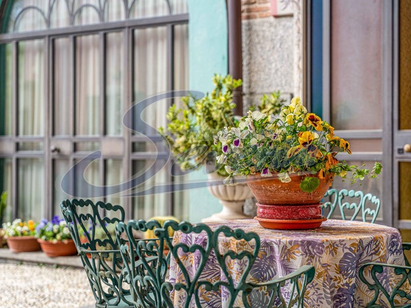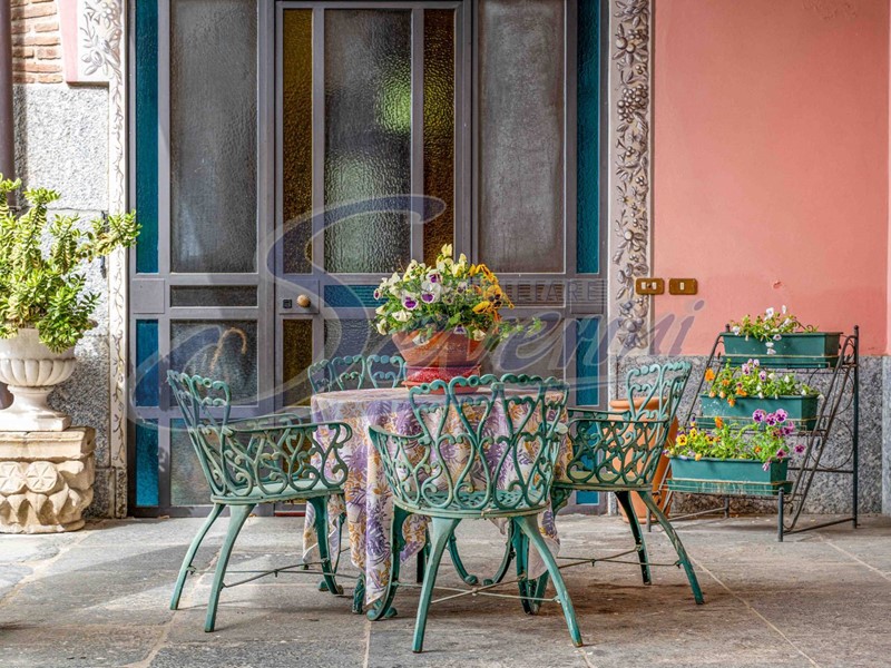 Stile architettonico: porticato con pietra di Moltrasio e colonne neoclassiche, rifiniture di pregio in marmo e parquet.