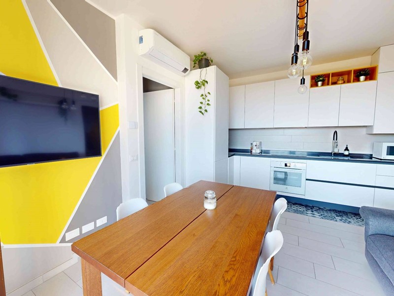 La porta blindata ci accoglie in un disimpegno dover poter arredare un capiente armadio quattro stagioni, dunque troviamo subito uno spazio pluriuso: l'ambiente ideale per dar sfogo alle proprie passioni o uno studio per coloro che hanno bisogno di fare smart-work. Ed eccoci poi all'intimità moderna che si respira nel LIVING con ELEGANTE CUCINA A VISTA: emblema di quell'ARMONIOSA FUNZIONALITA' che poche case possono vantare davvero, e poi godetevi l'ariosa visuale del suo TERRAZZINO RIPARATO, sfogo esterno facilmente usufruibile anche nelle mezze stagioni.