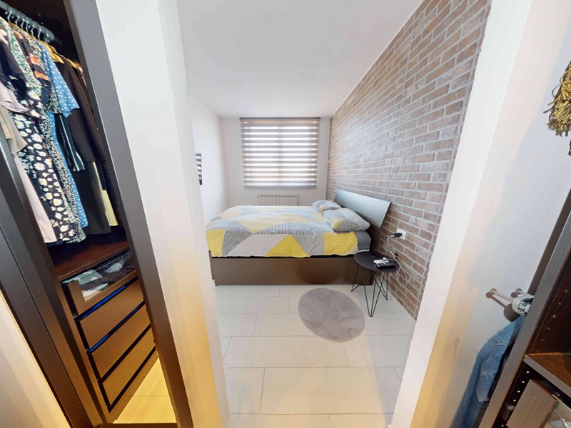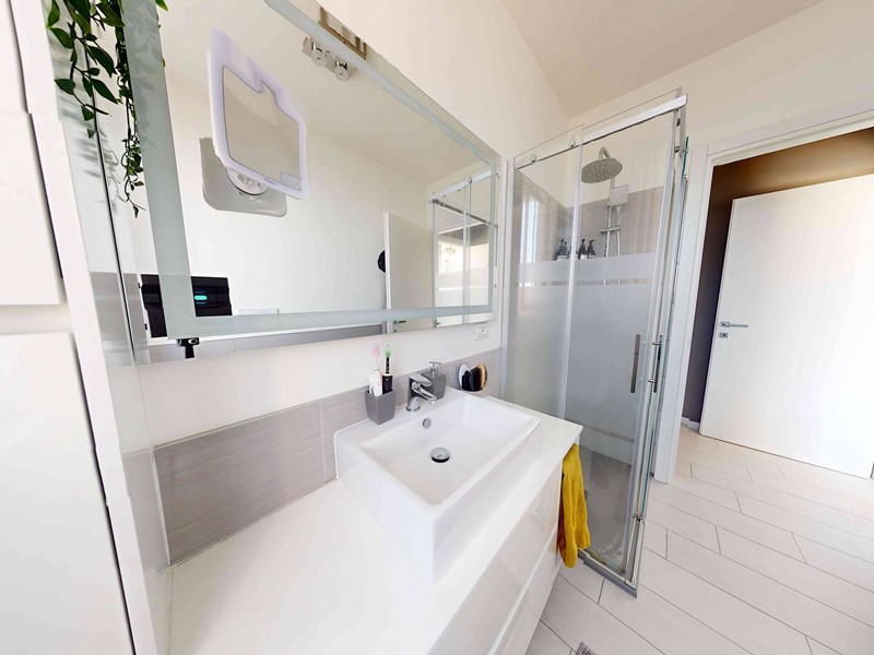 L'antibagno suddivide la zona notte dove troviamo un comodo bagno con doccia e la camera da letto impreziosita da un'invidiabile CABINA ARMADIO.