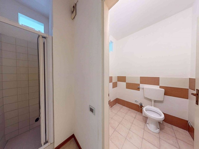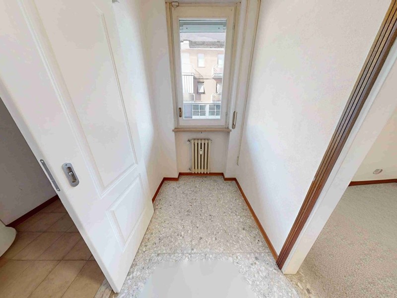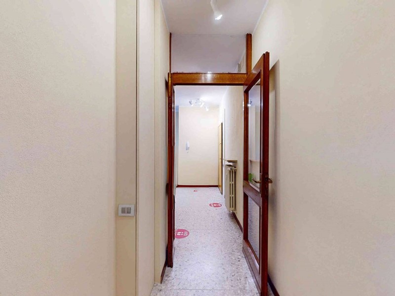 La porta blindata d'ingresso disimpegna il primo locale di accoglienza con adiacente un funzionale disimpegno che anticipa il primo servizio; sempre dal disimpegno d'ingresso il corridoio disloca altre due ampie stanze: una da 11mq e l'altra da 15mq; infine troviamo un antibagno con doccia che ritaglia il secondo servizio.