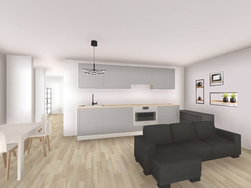 L'ingresso presenta dunque un comodo soggiorno con angolo cottura lineare, mentre il disimpegno suddivide il bagno con doccia e la camera da letto.